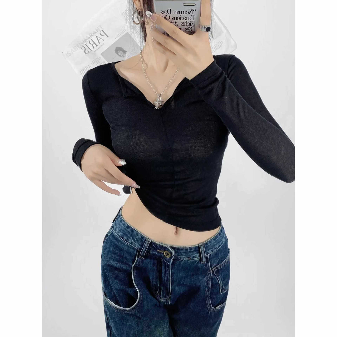 Damen langärmliges Oberteil mit elegantem Ausschnitt Fudus