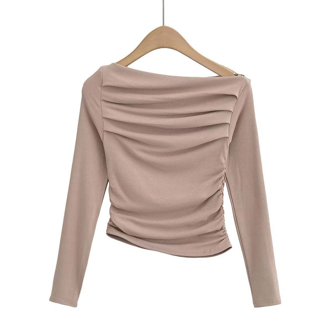 Damen langärmliges Oberteil mit gerafftem Design und asymmetrischem Ausschnitt Fudus