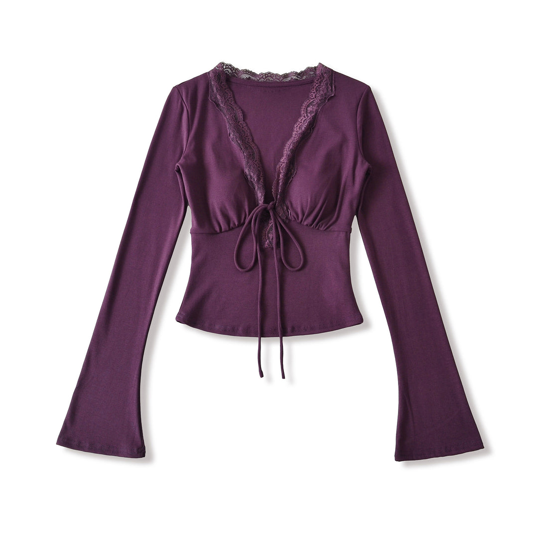 Damen langärmliges Oberteil mit Rüschendetails und eleganter Schnürung Fudus