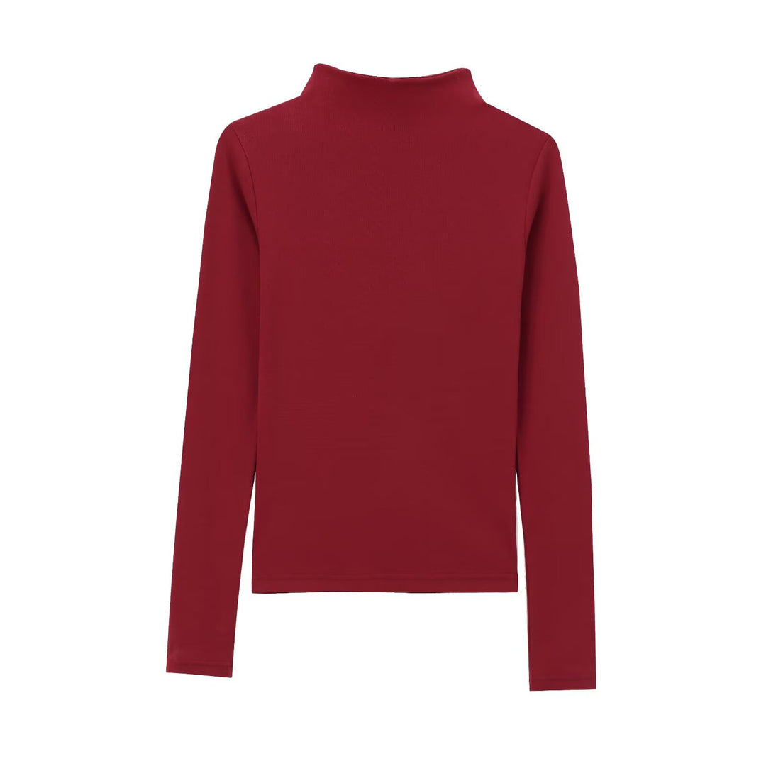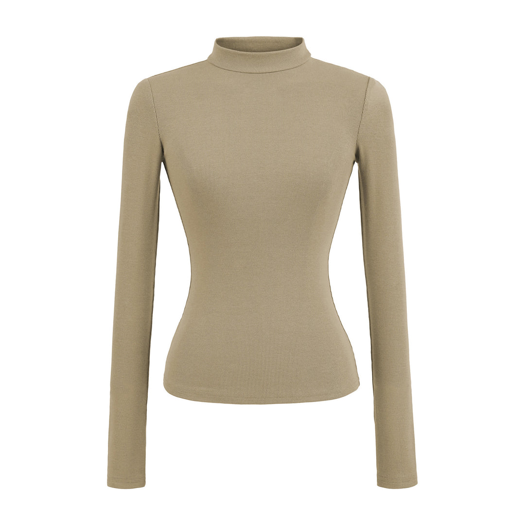 Damen langärmliges Rippoberteil mit hohem Kragen Fudus
