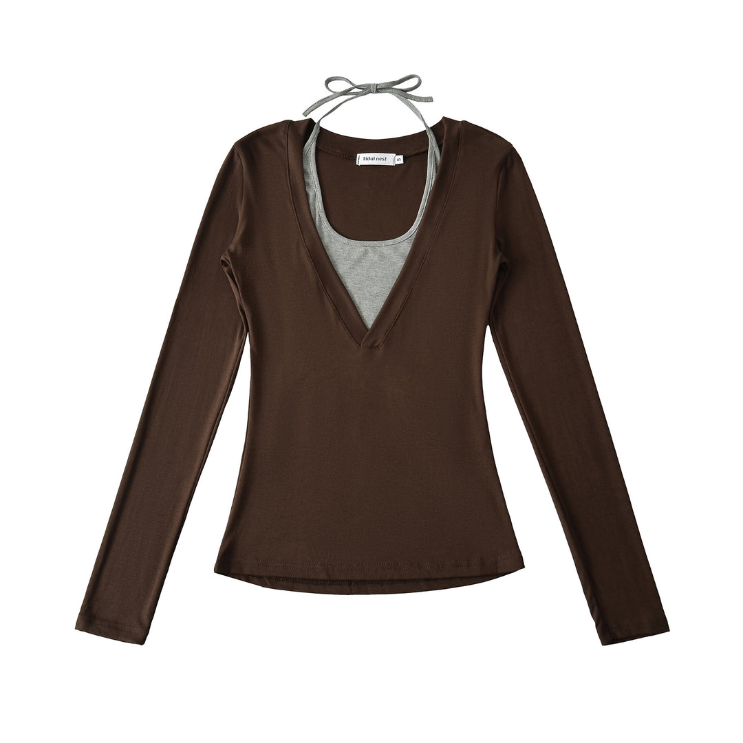 Damen Langärmliges Oberteil mit tiefem V-Ausschnitt und figurformendem Schnitt Fudus