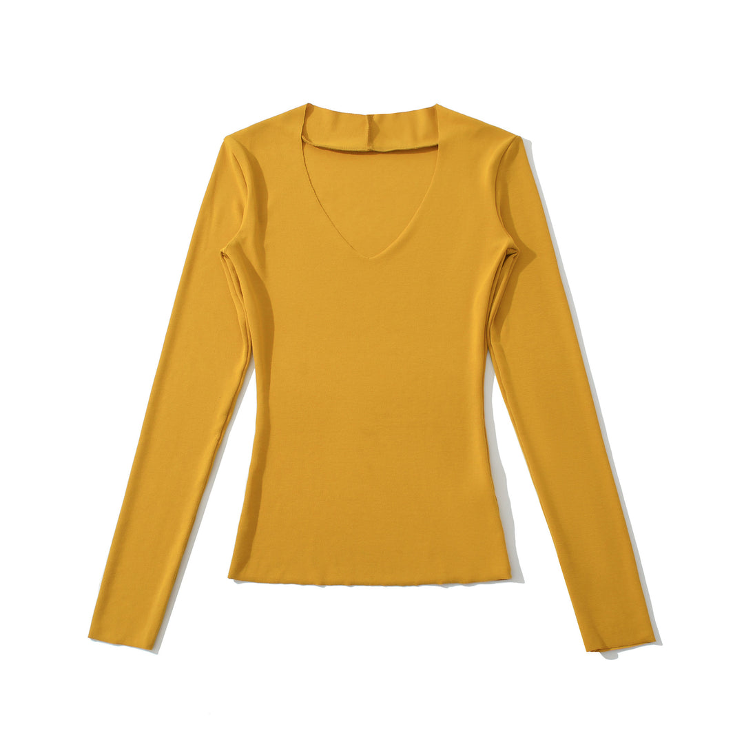 Damen langärmliges Slim-Fit Oberteil mit V-Ausschnitt Fudus
