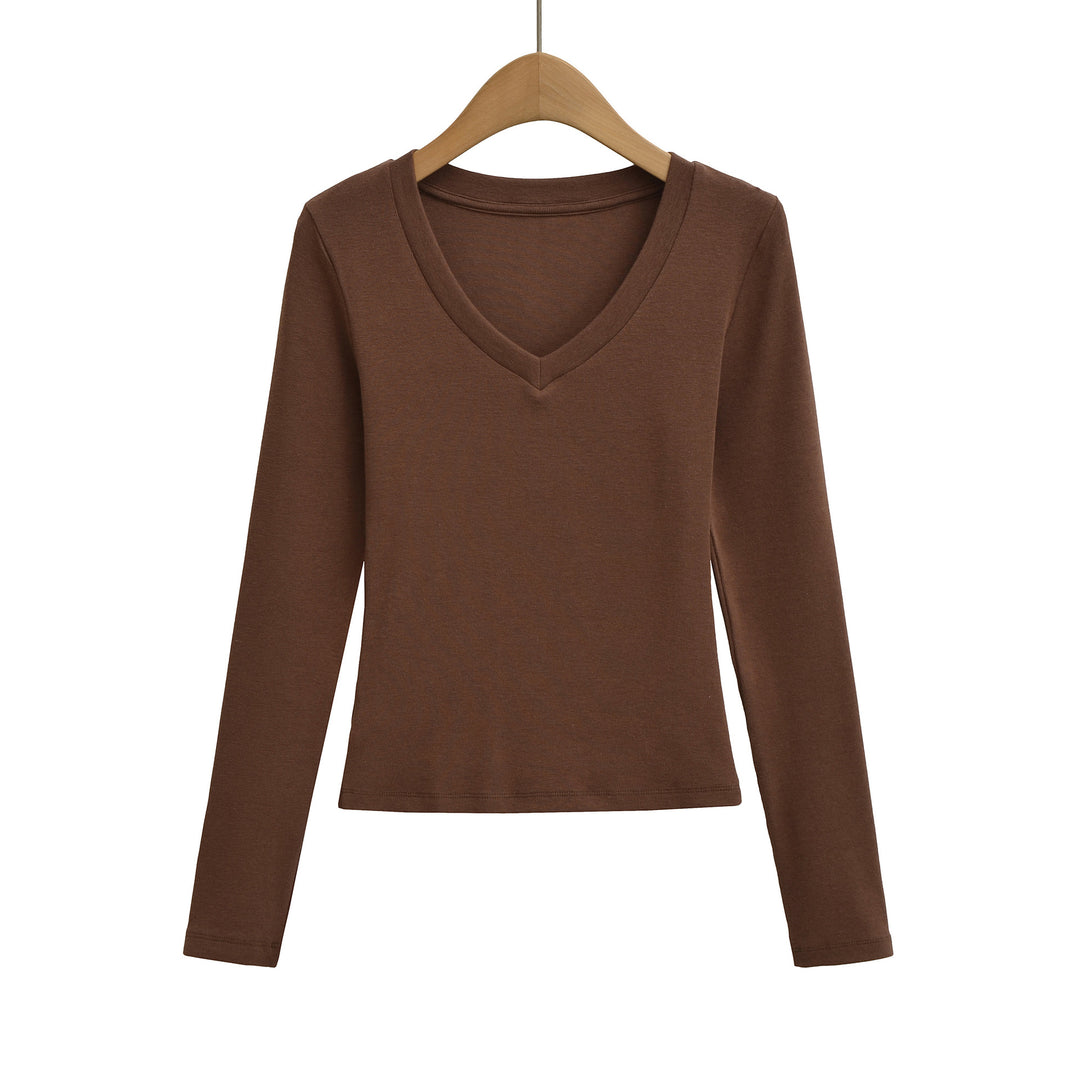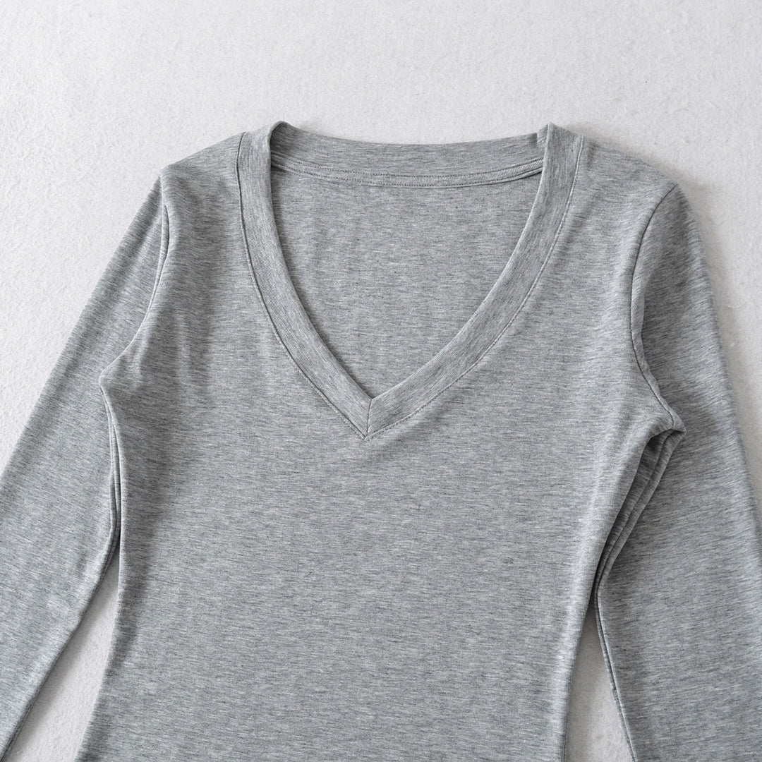 Damen langärmliges V-Ausschnitt Oberteil Fudus