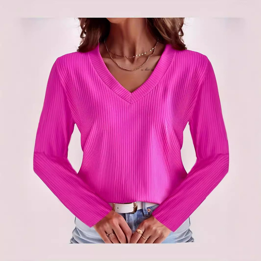 Damen Langärmliges V-Ausschnitt Oberteil mit Rippstruktur Fudus