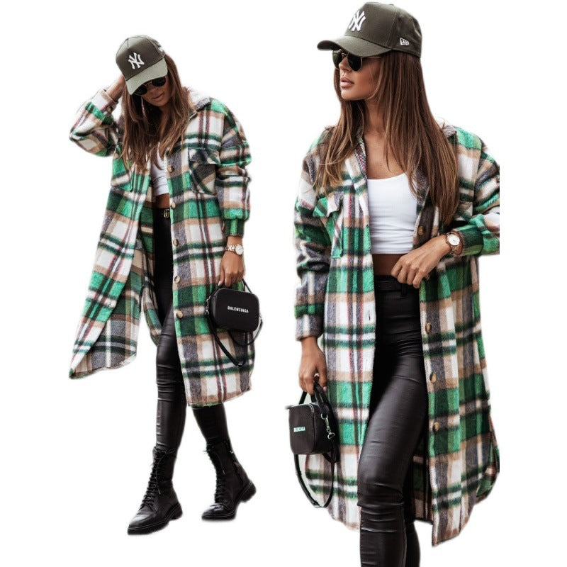 Damen Langer Karo-Wintermantel mit knöpfbarem Design und lockerer Passform Fudus