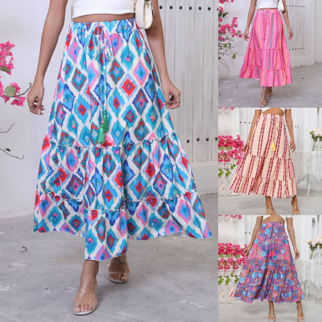 Damen Langer Maxirock mit fröhlichem Stufen-Design und elastischem Bund Fudus