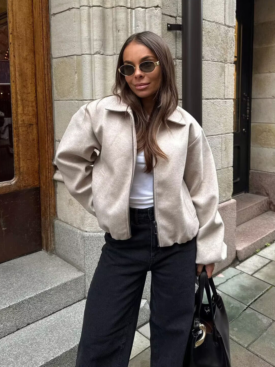 Damen lässige Blousonjacke mit hochschließendem Kragen Fudus