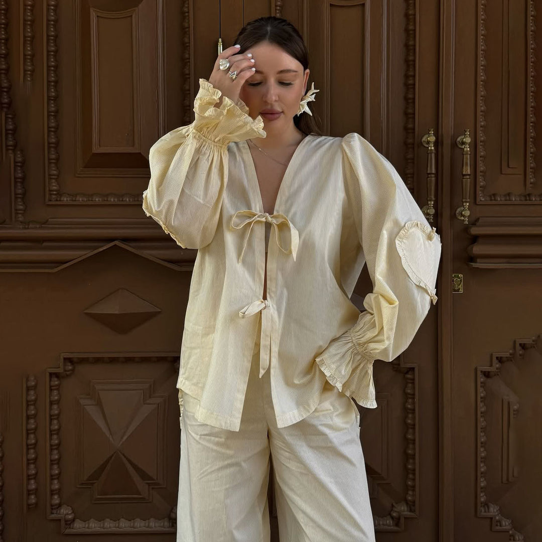 Damen lässige Bluse mit Rüschendetails und Kordelzug Fudus