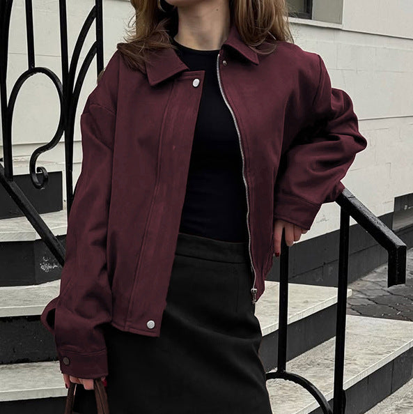 Damen lässige Bomberjacke mit feinem Strukturdesign und praktischen Taschen Fudus