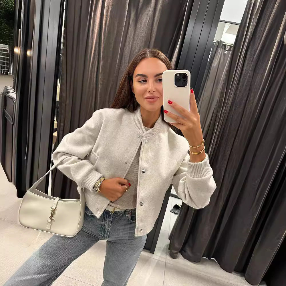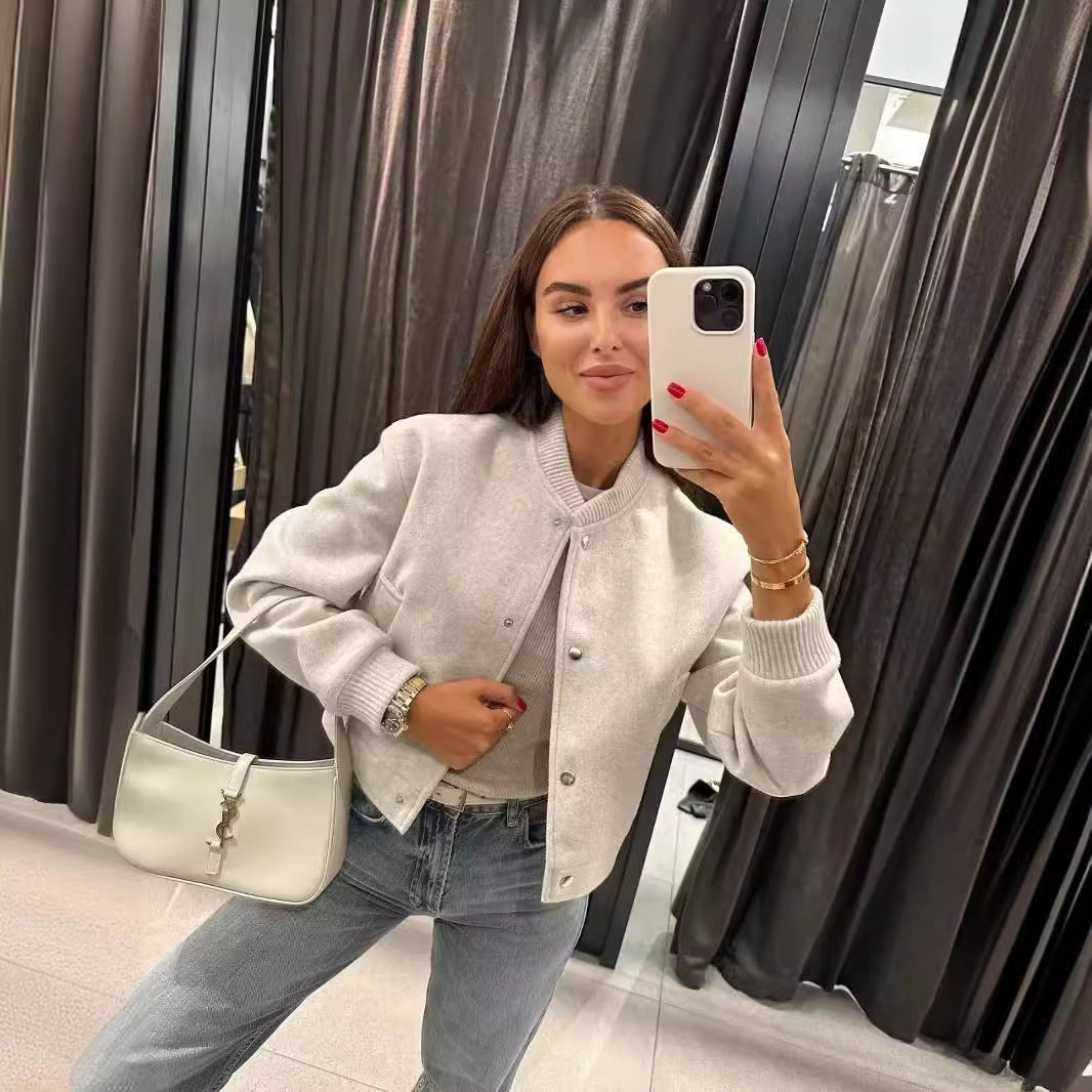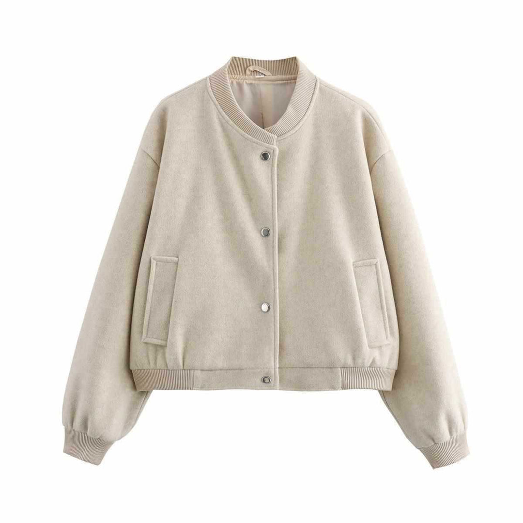 Damen lässige Bomberjacke aus hochwertigem Wollmix mit praktischen Taschen Fudus