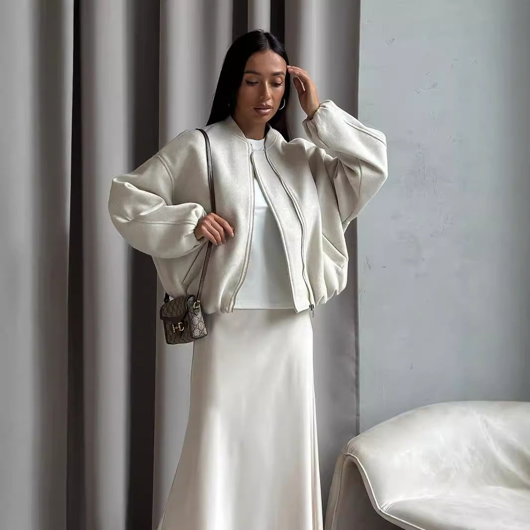 Damen lässige Bomberjacke mit elastischen Bündchen und praktischen Taschen Fudus