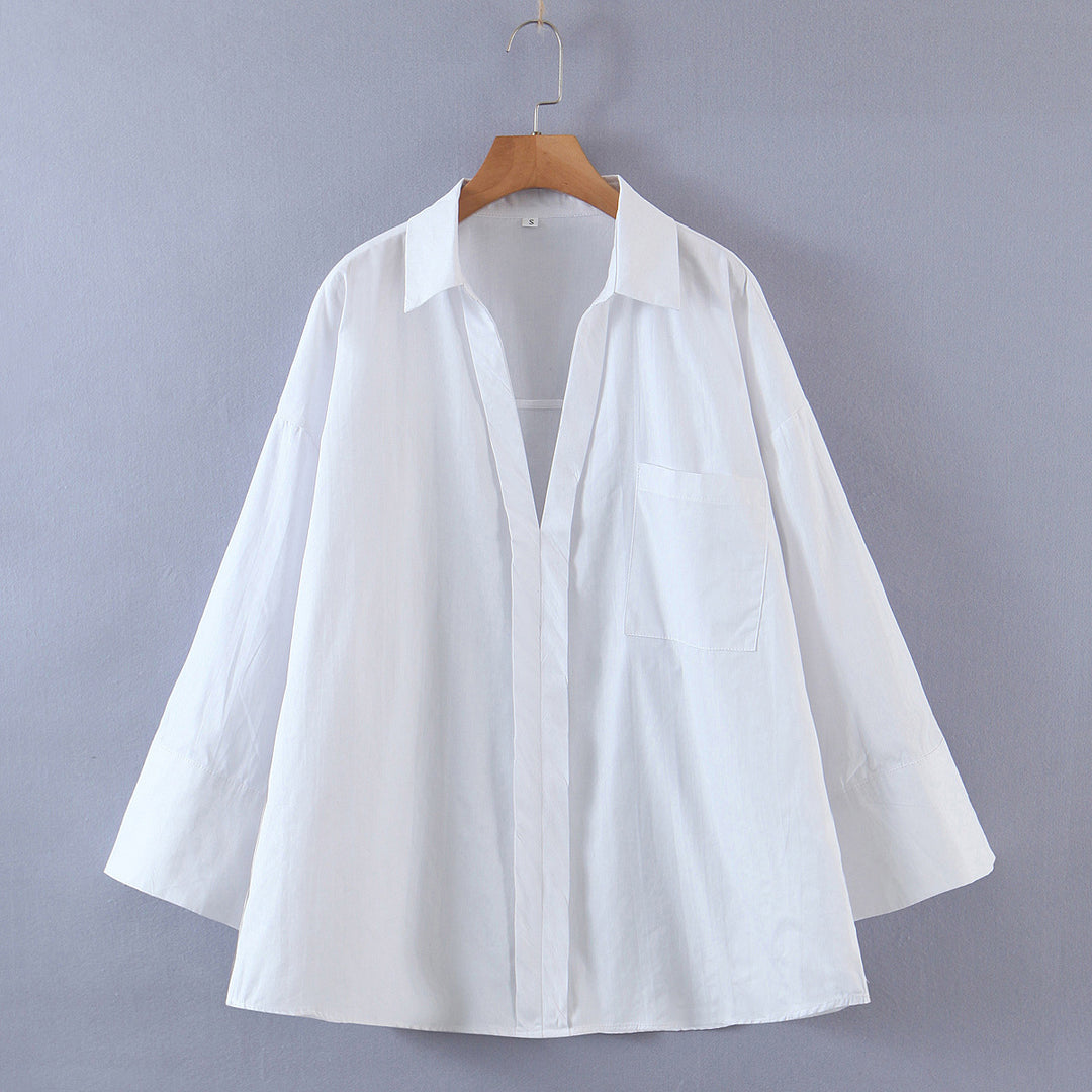 Damen lässige Bluse mit weitem Schnitt und praktischer Brusttasche Fudus