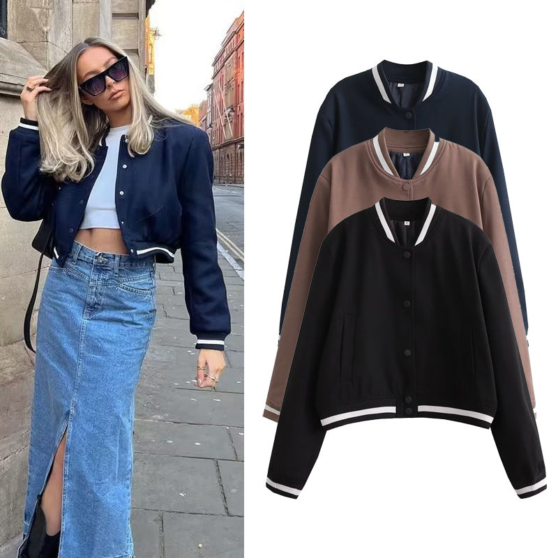 Damen lässige Bomberjacke mit elastischen Bündchen und modischem Schnitt Fudus