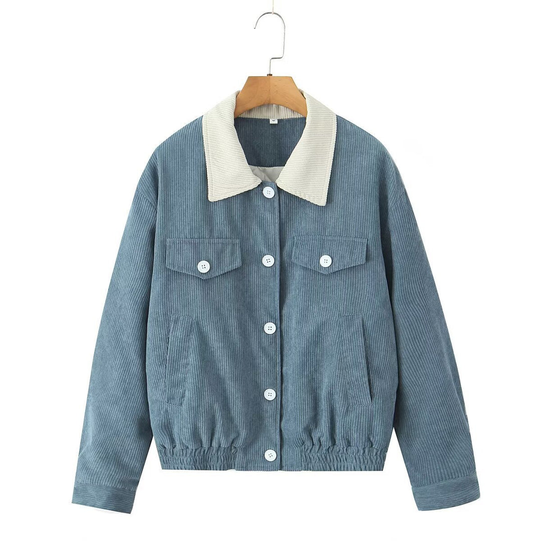 Damen lässige Cordjacke mit Druckknopfverschluss und elastischen Bündchen Fudus