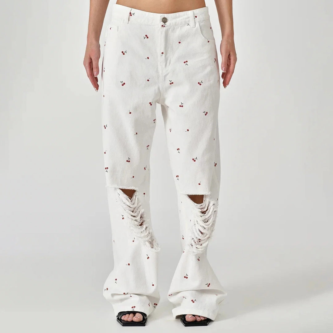 Damen lässige High-Waist Jeans mit einzigartigen Riss-Details und lockerer Passform Fudus