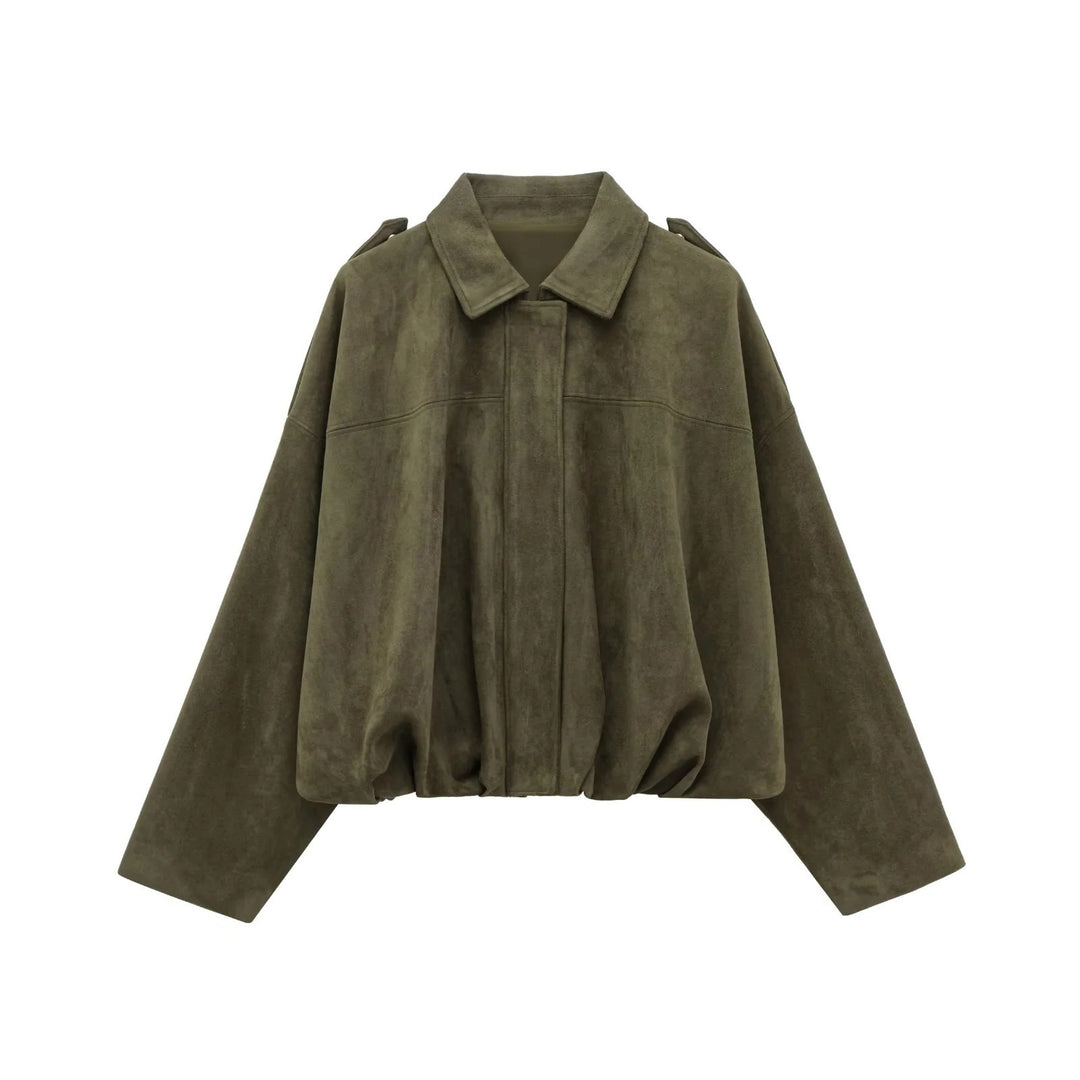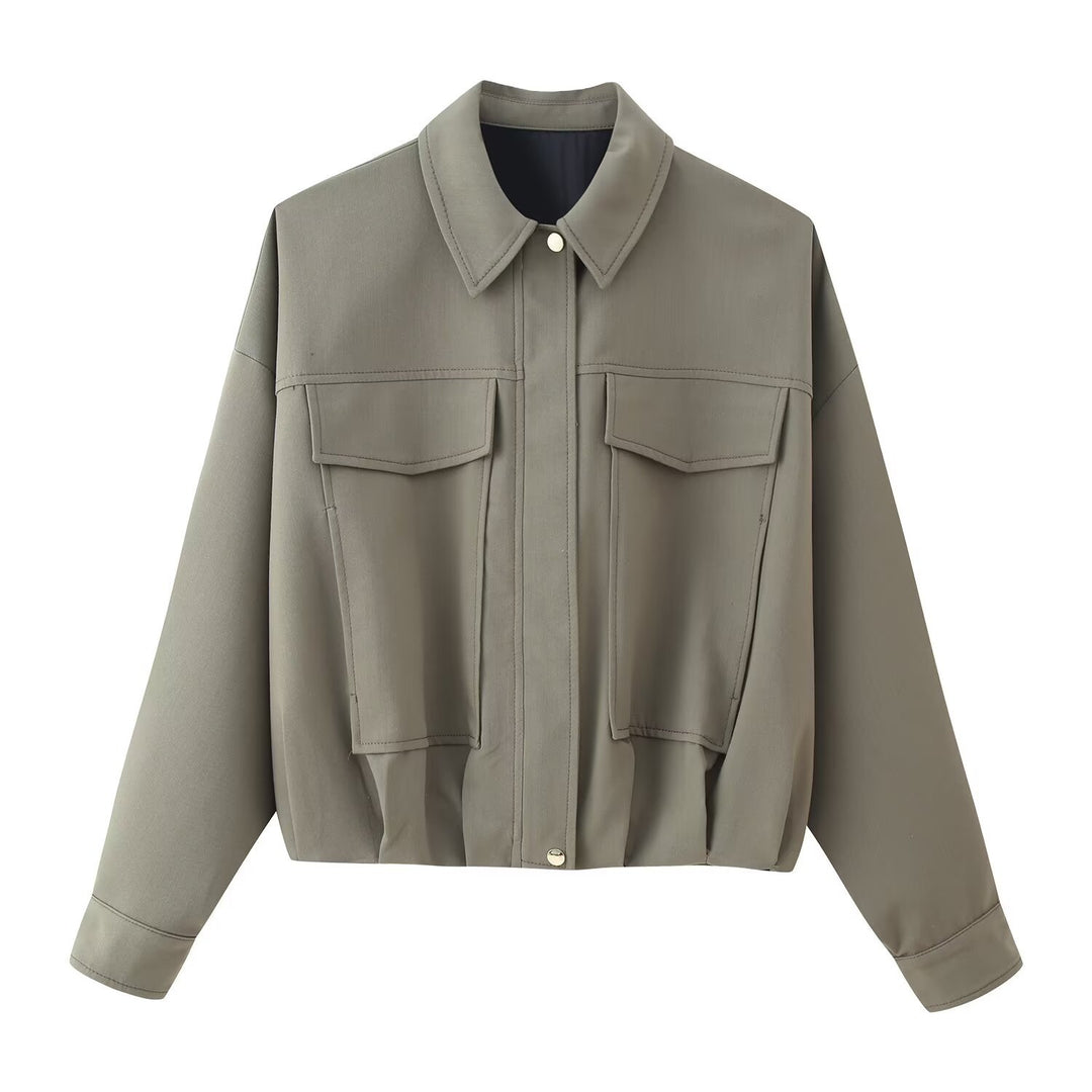 Damen lässige Oversize-Jacke mit elastischem Bund und praktischen Taschen Fudus
