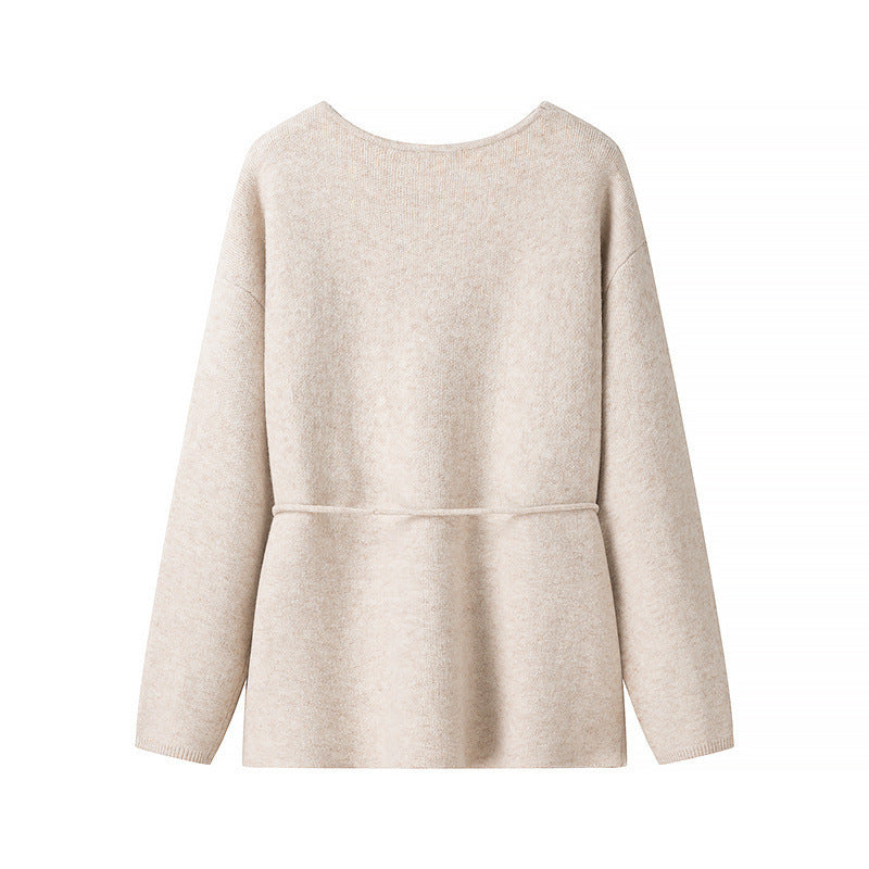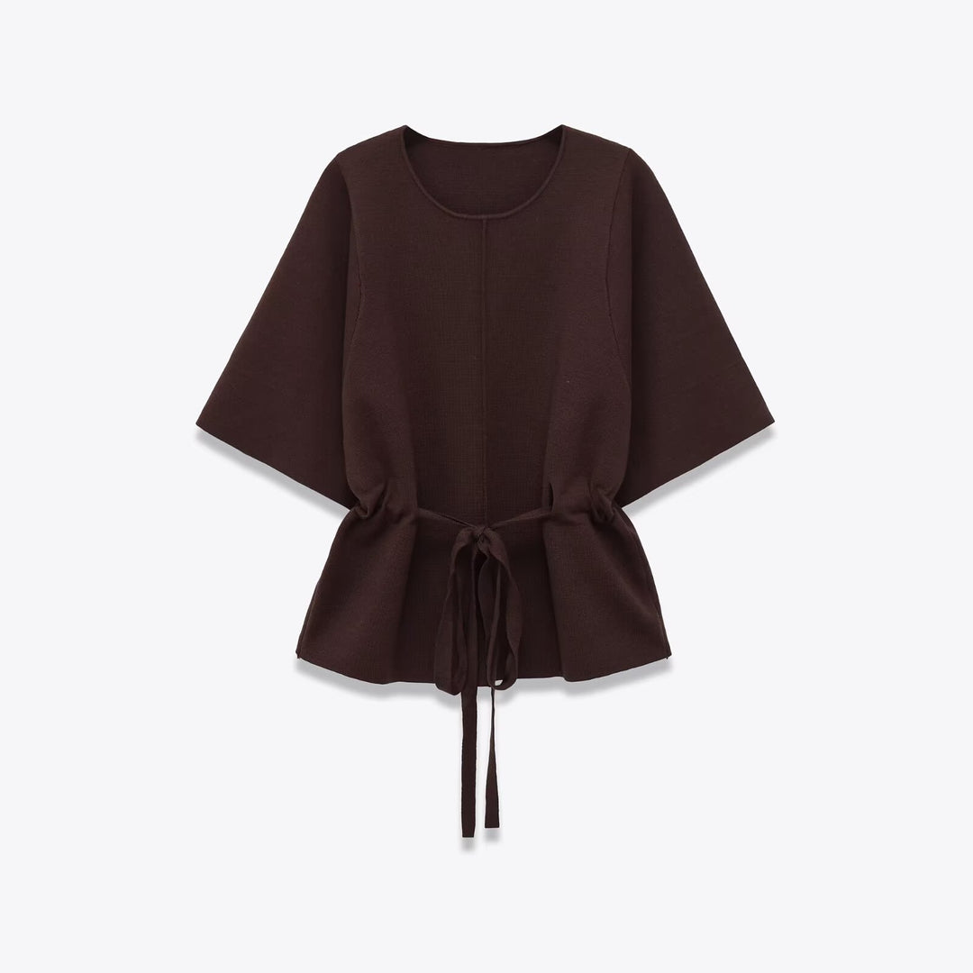 Damen lässige Strickbluse mit Taillenbindung Fudus