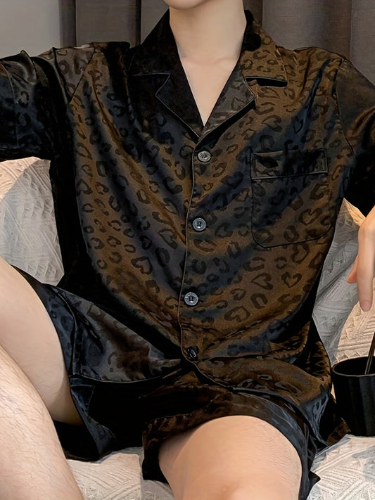 Herren Sommer Eis Seide Pyjama Satz Mit Blumen Und Blättern Druck