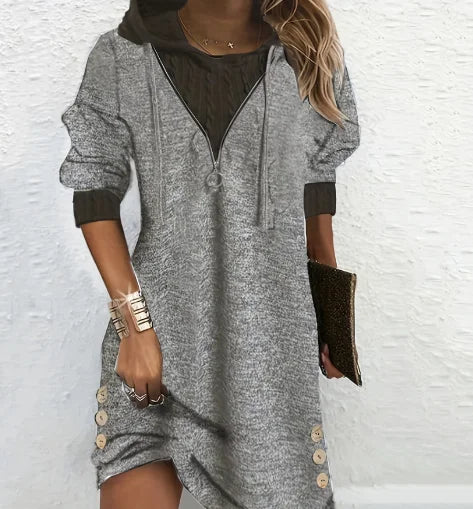 Fudus | Patchwork Kapuzenkleid Für Damen Mit Langen Ärmeln