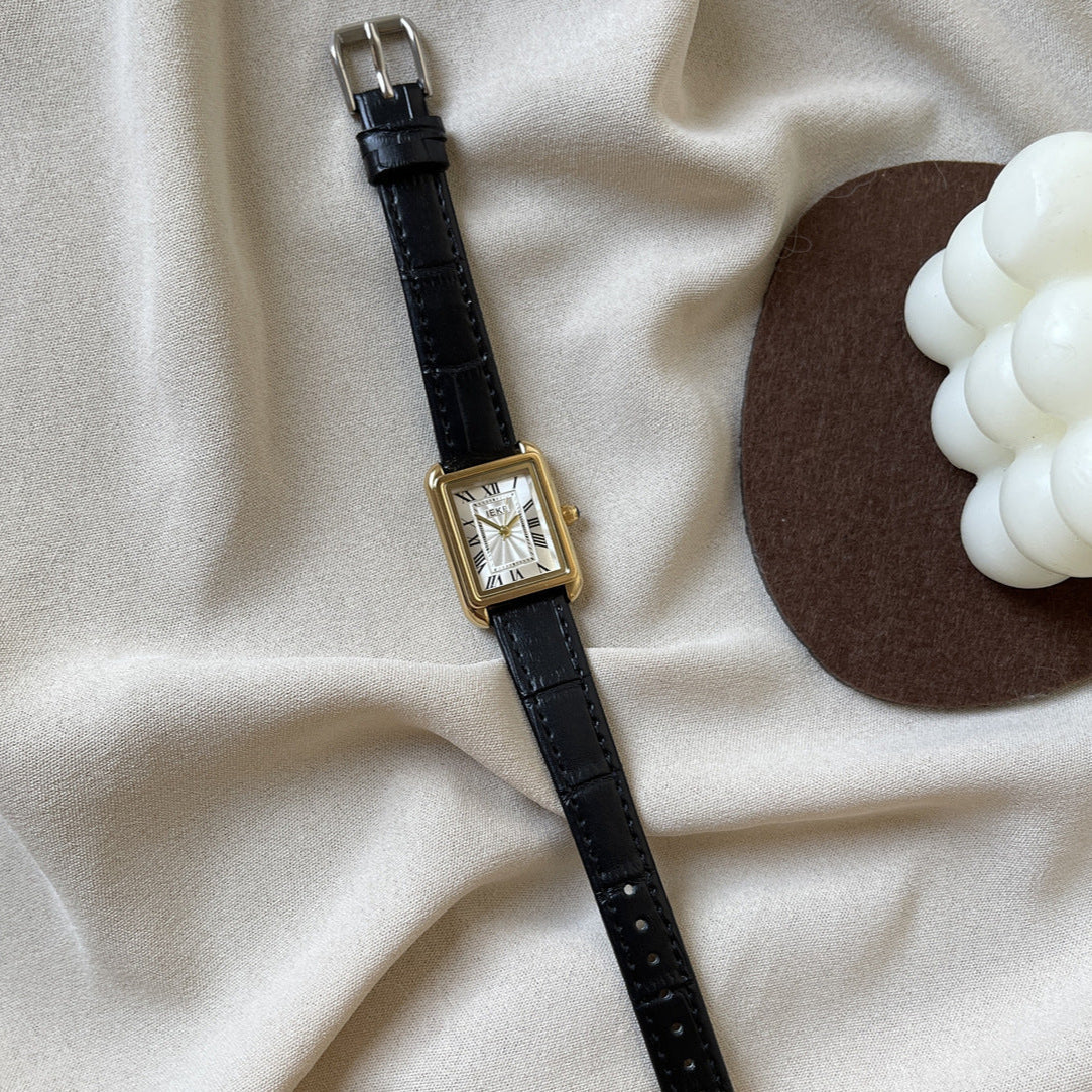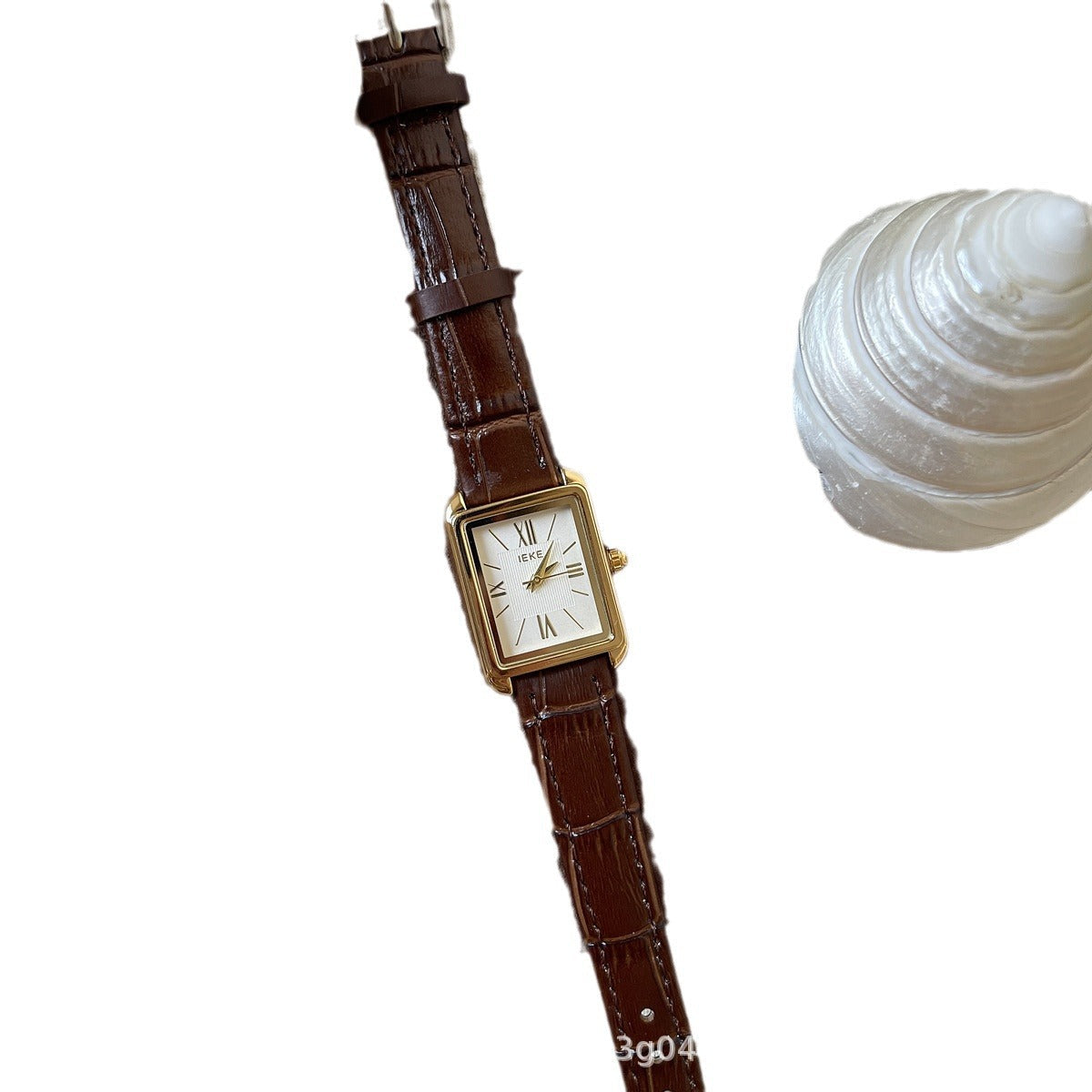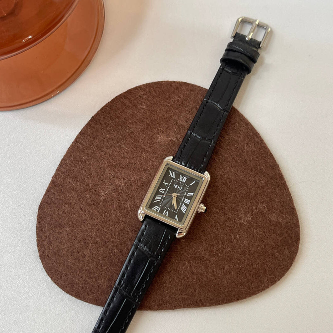 Damenarmbanduhr Quadratisch Lederband Römische Zahlen
