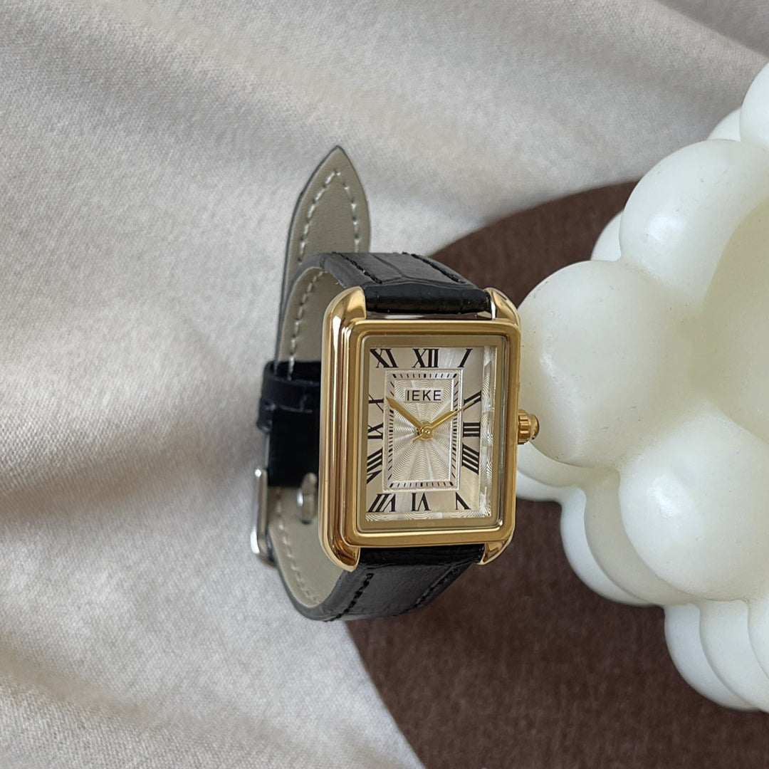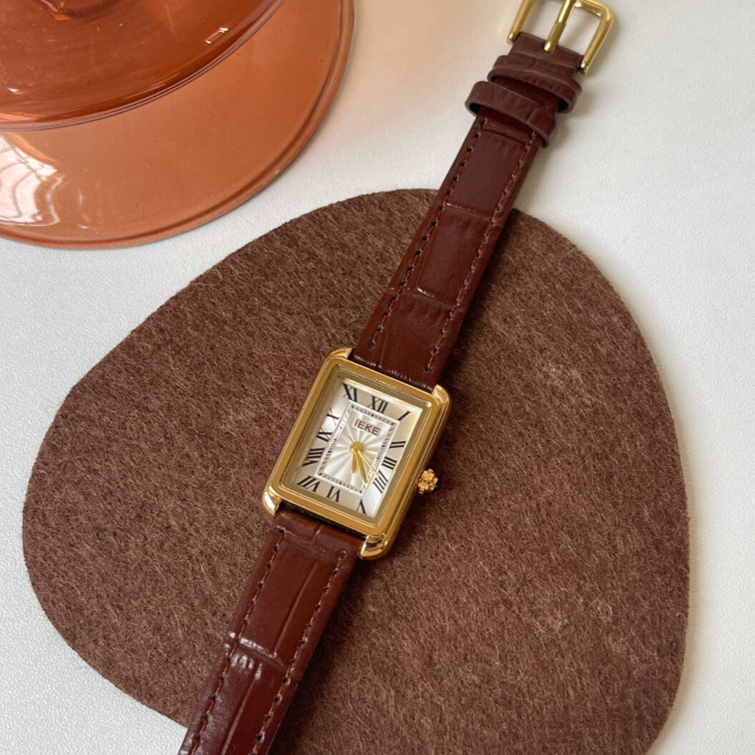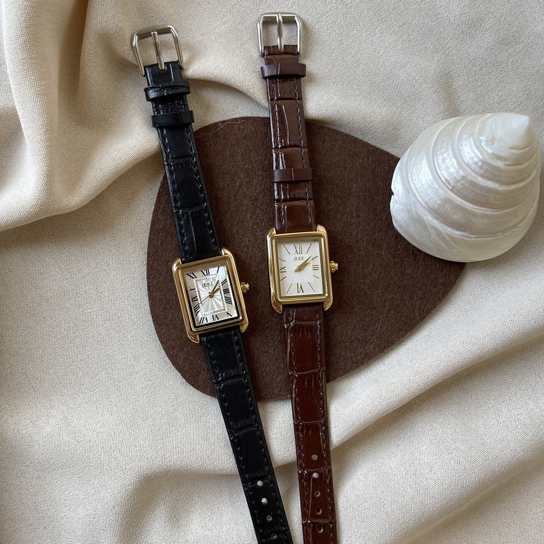 Damenarmbanduhr Quadratisch Lederband Römische Zahlen