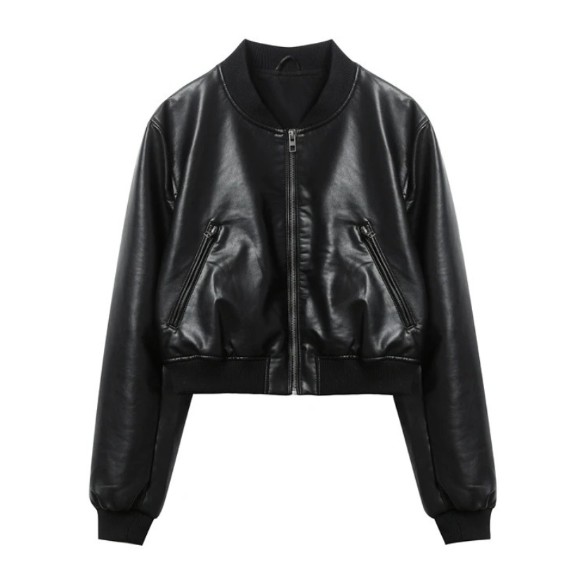 Damen Lederjacke Bombermodell mit gerippten Bündchen und Reißverschlusstaschen