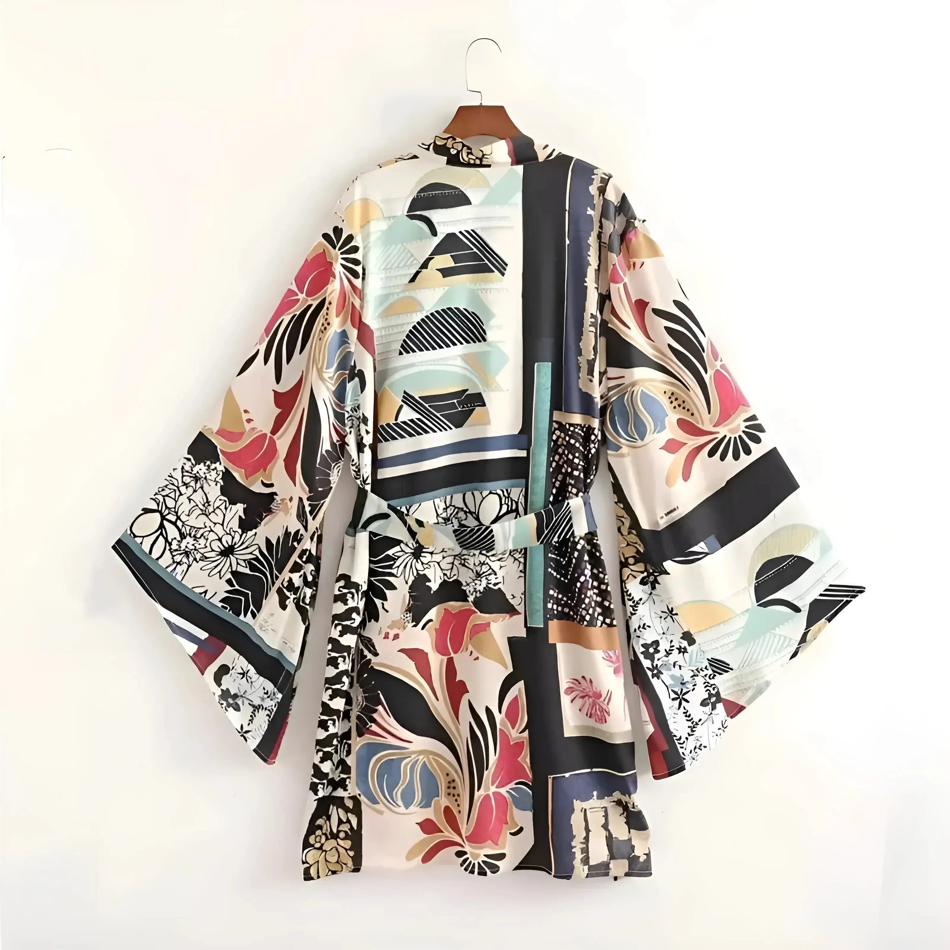 Dieser wunderschöne, bunte Strand-Kimono im mehrfarbigen Patchwork-Design ist darauf ausgelegt, harmonisch mit Ihnen zu fließen. Er verfügt über lockere, fließende Ärmel und eine offene Front mit Bindegürtel. Genießen Sie den leichten, luftigen Stoff und den hohen Komfort, der Ihren individuellen Stil für den Strand oder lässige Anlässe unterstreicht.
