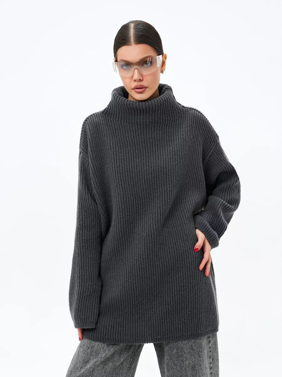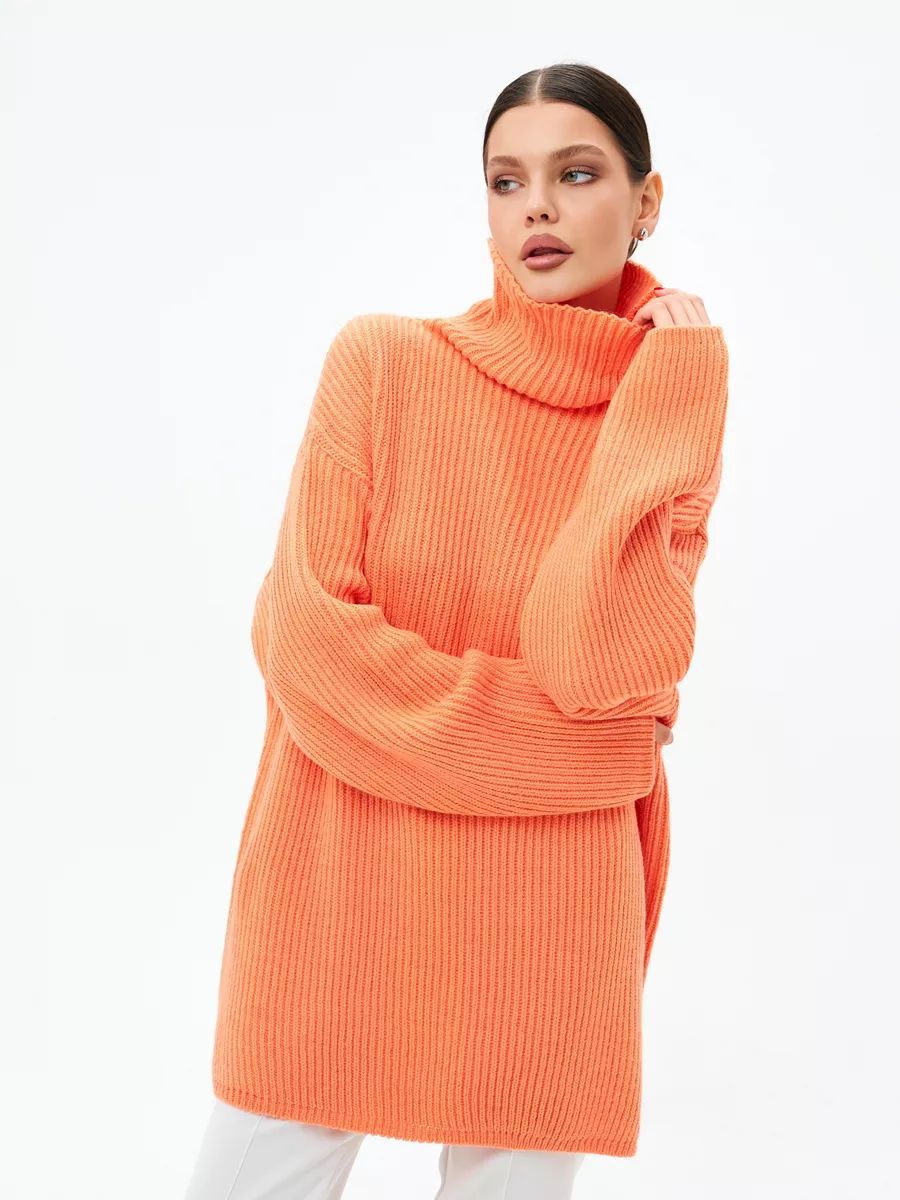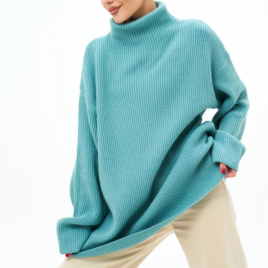Damen Grobstrick Pullover mit hohem Rollkragen und lässigem Schnitt Fudus