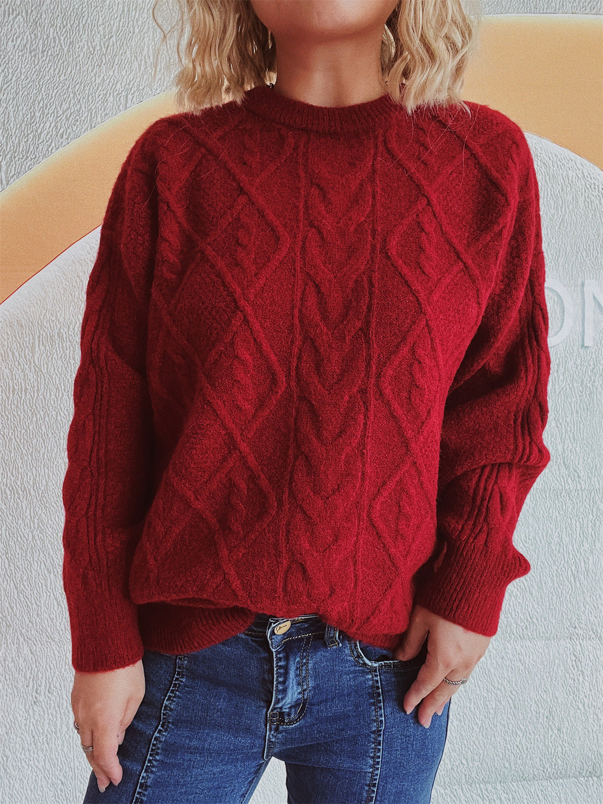 Damen Grobstrickpullover mit elegantem Zopfdesign und lässigem Schnitt Fudus