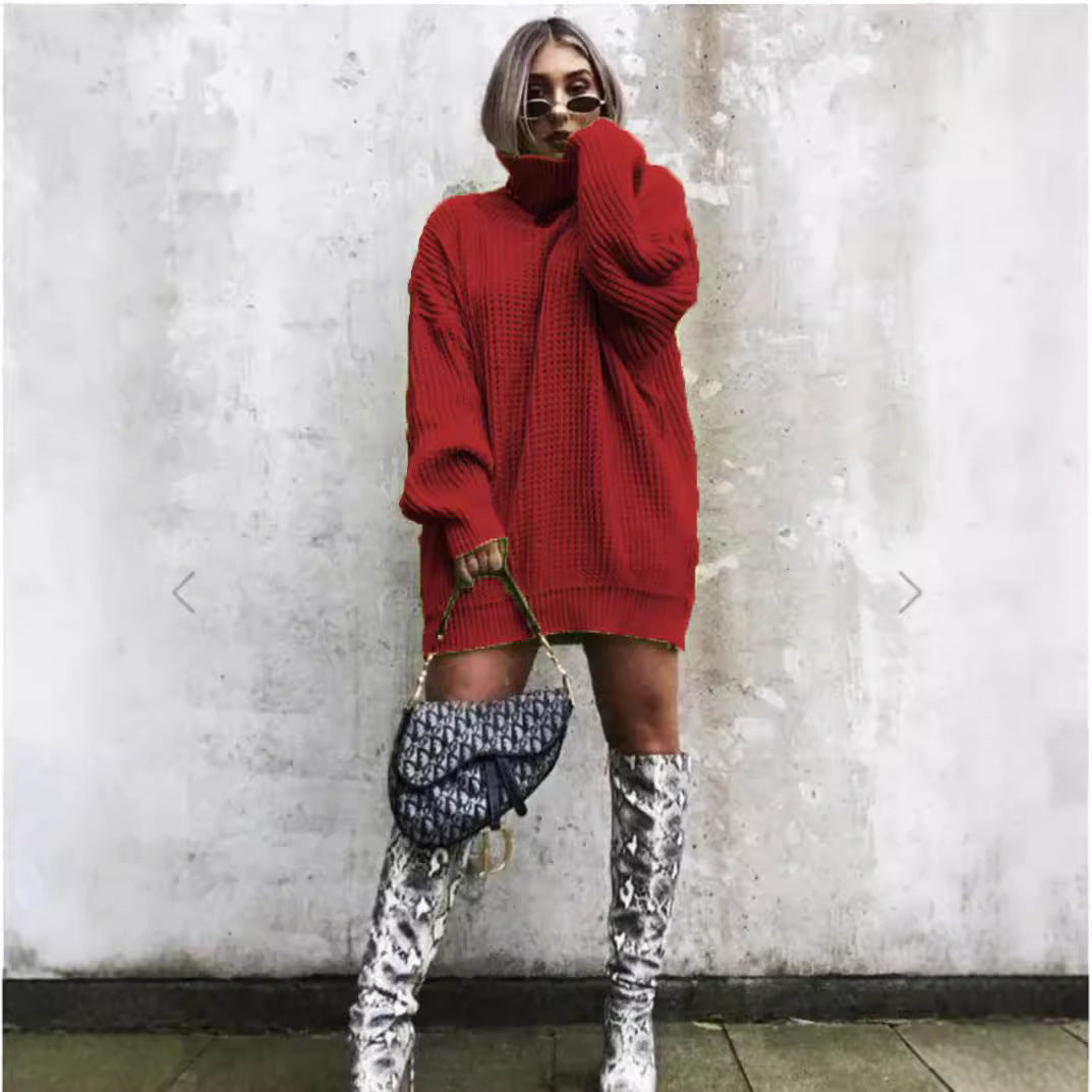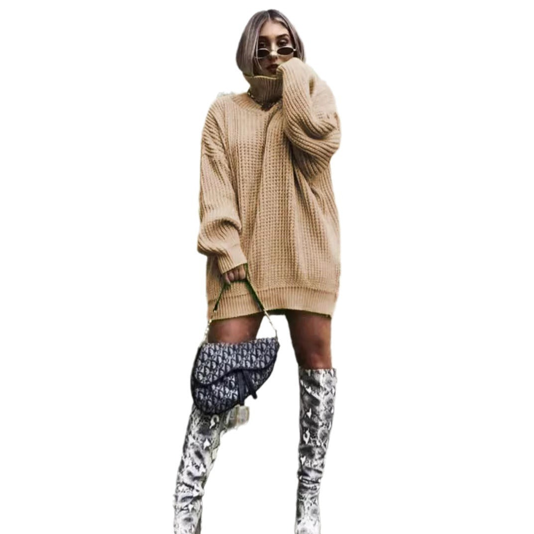 Damen Grobstrickpullover mit hohem Kragen und lockerem Schnitt Fudus