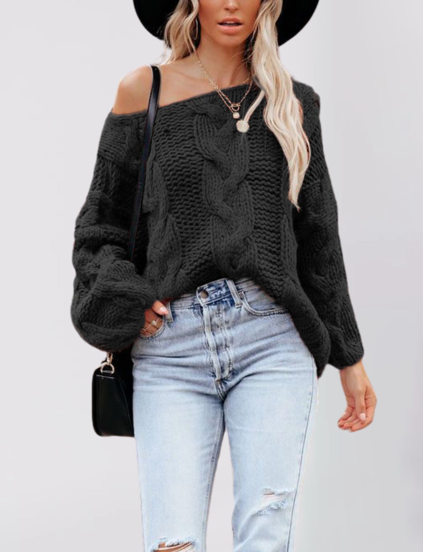 Damen Grobstrickpullover mit schulterfreiem Design Fudus