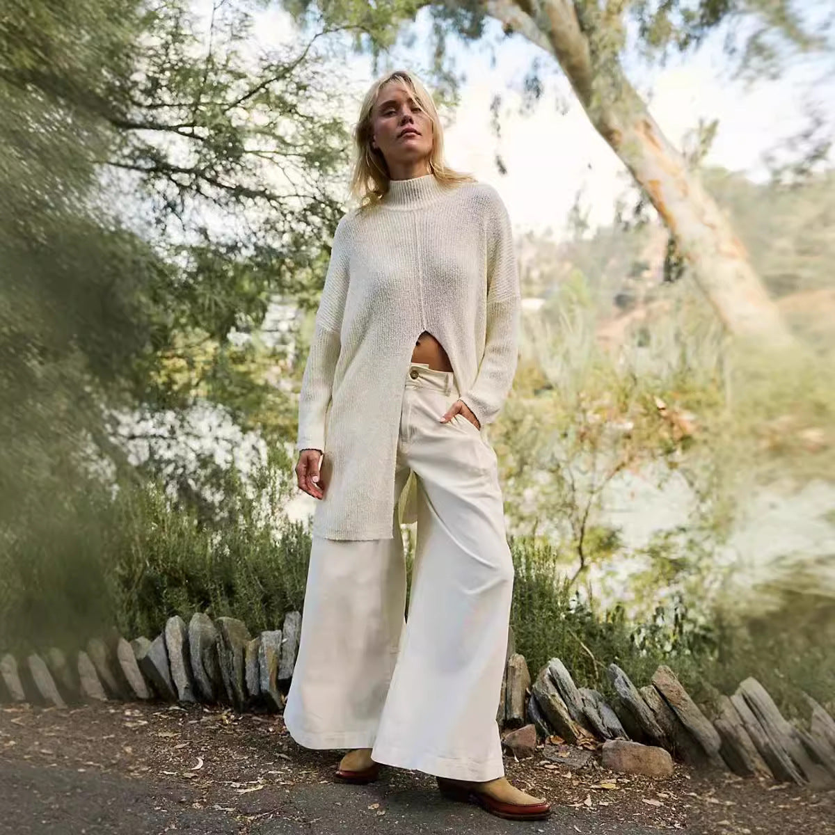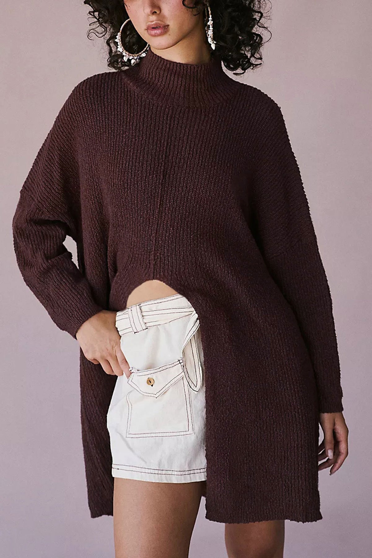 Damen Grobstrickpullover mit seitlichem Schlitz Fudus