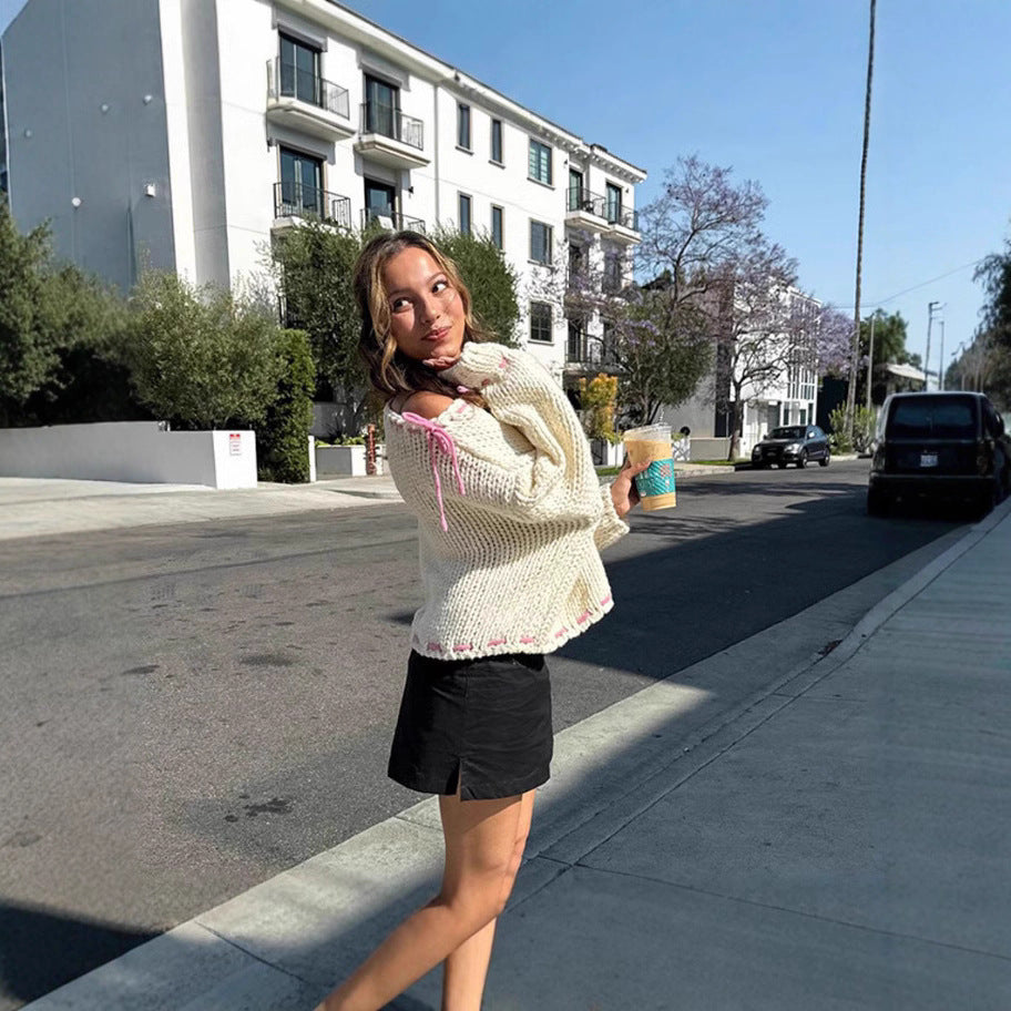 - Wunderschönes Design: Die verspielten Schleifendetails an den Ärmeln verleihen dem Pullover einen trendigen und femininen Look.