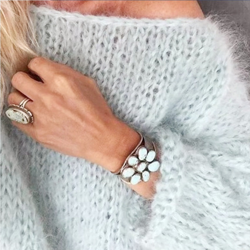 Damen Grobstrickpullover mit weiten Ärmel Fudus