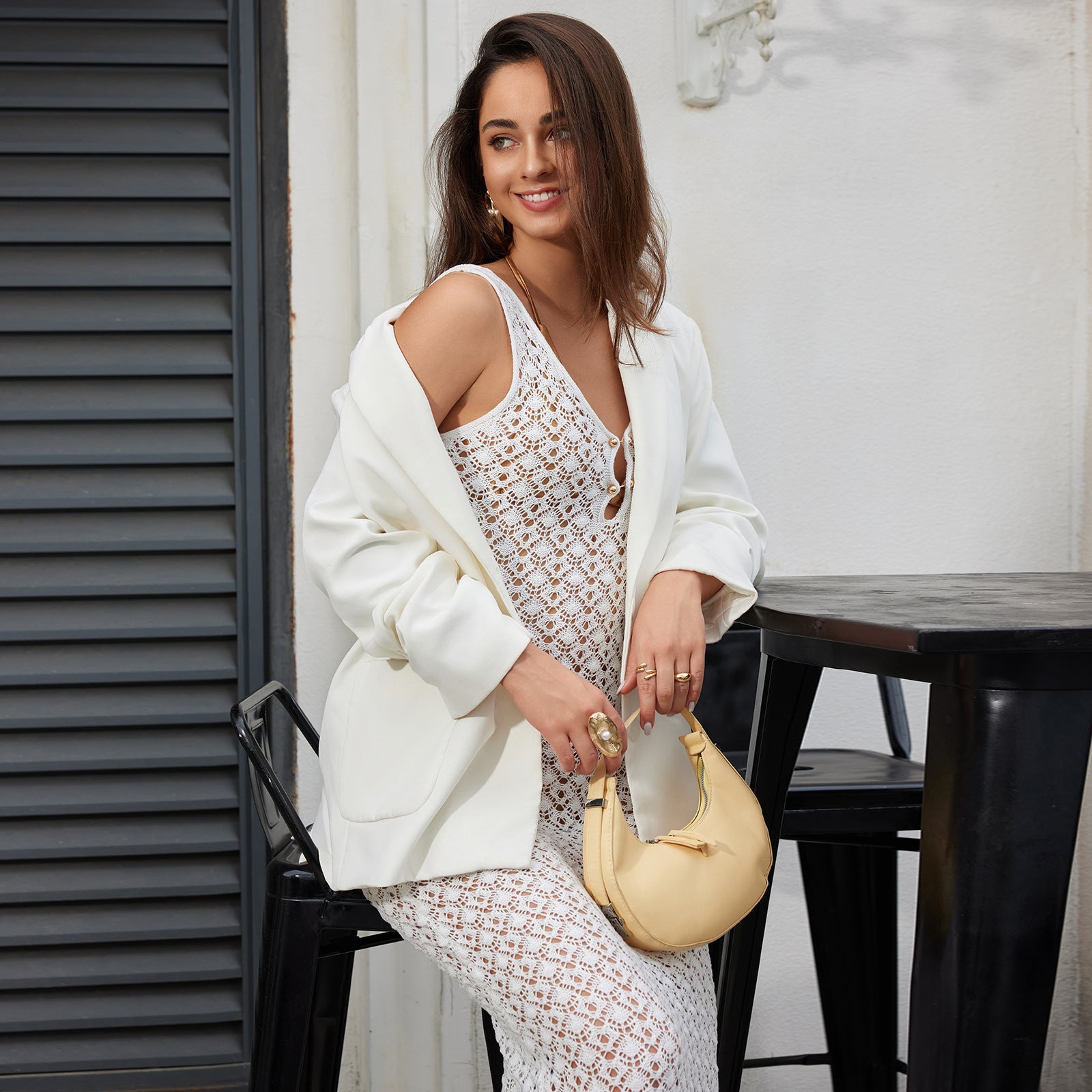Entdecken Sie unser wunderschönes Damen Häkel-Maxikleid, das mit einem stilvollen Lochmuster und einem tiefen V-Ausschnitt ausgestattet ist. Dieses Kleid ist die perfekte Wahl für heiße Sommertage, an denen Sie sowohl Komfort als auch Eleganz wünschen.