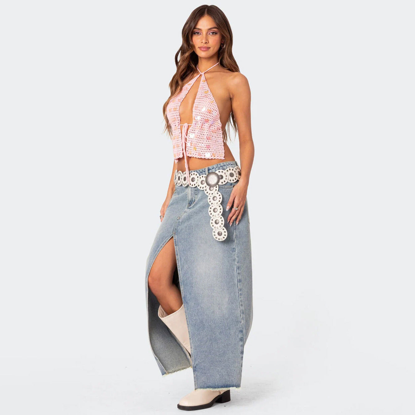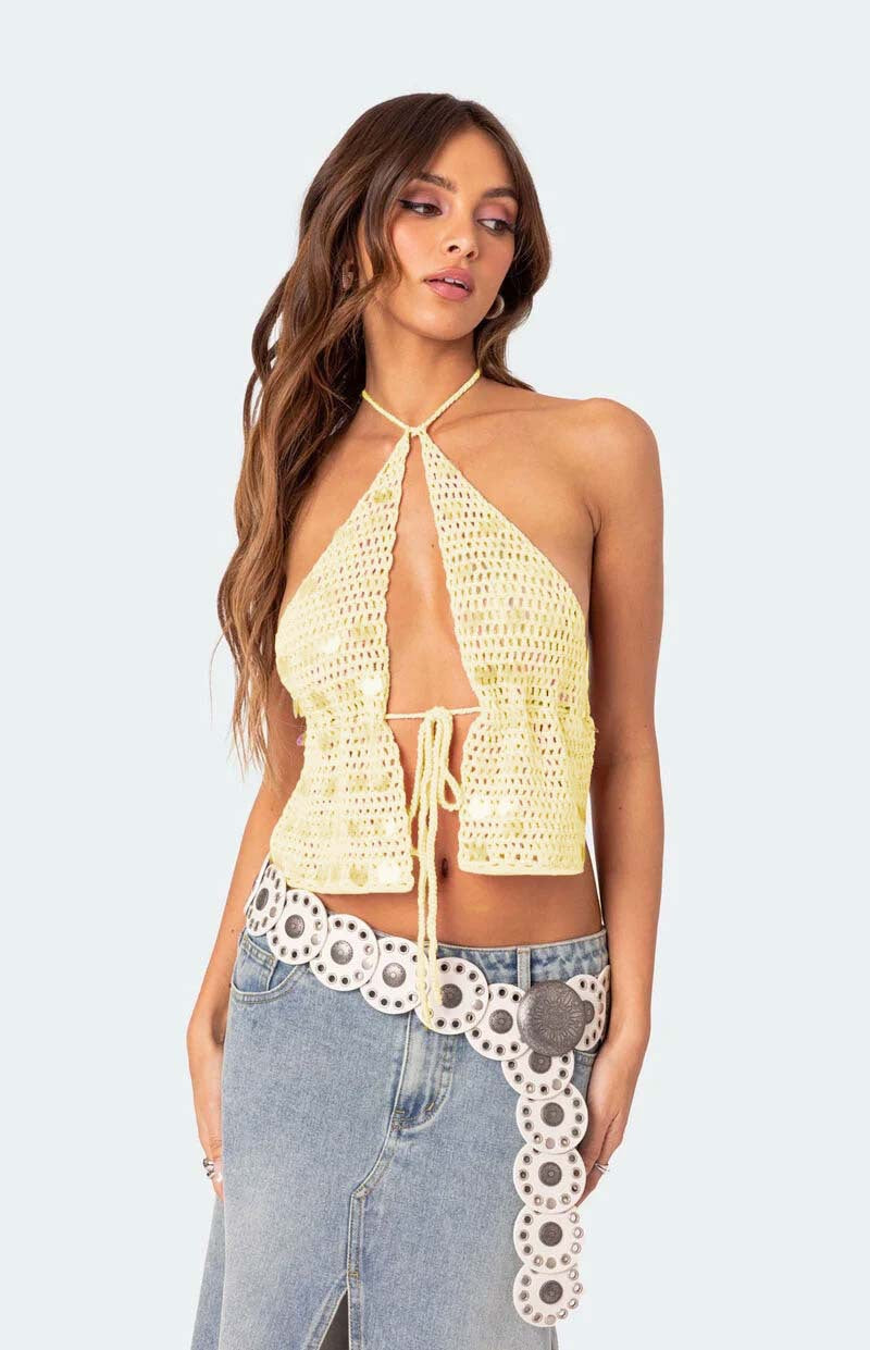 Das perfekte Teil für den Strand oder ein lässiges Stadt-Outfit! Verleihen Sie Ihrem Sommerlook mit diesem stilvollen Häkeloberteil einen Hauch von Eleganz.