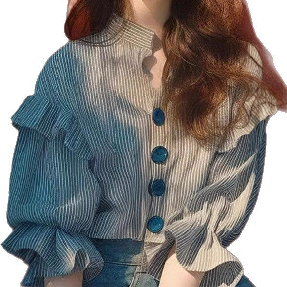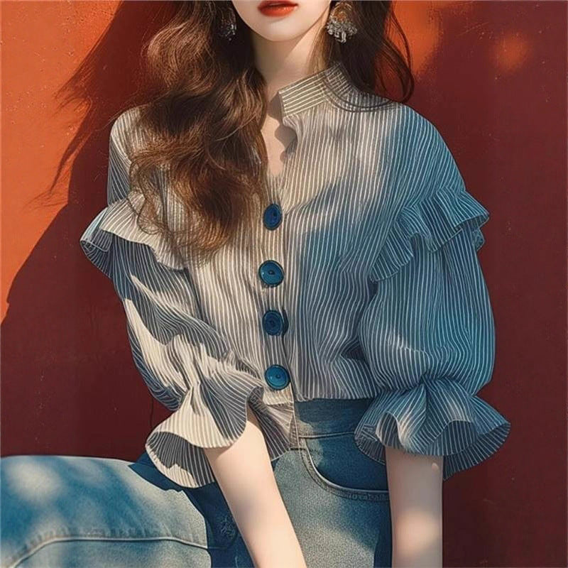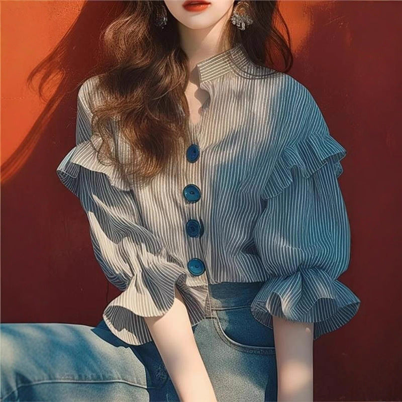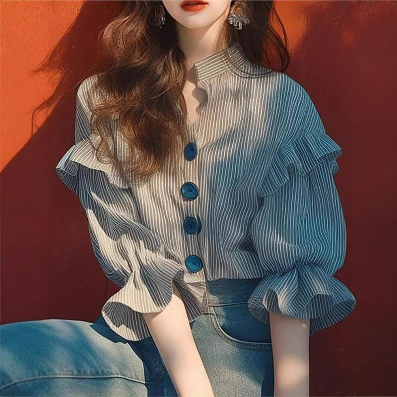 Damen Hemdbluse mit Rüschen und Knopfdetail Fudus
