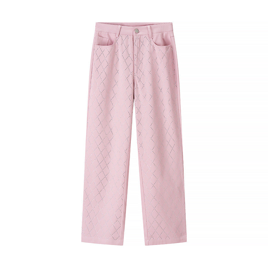 Damen Hochwertige Baumwollhose mit dekorativem Rautenmuster Fudus