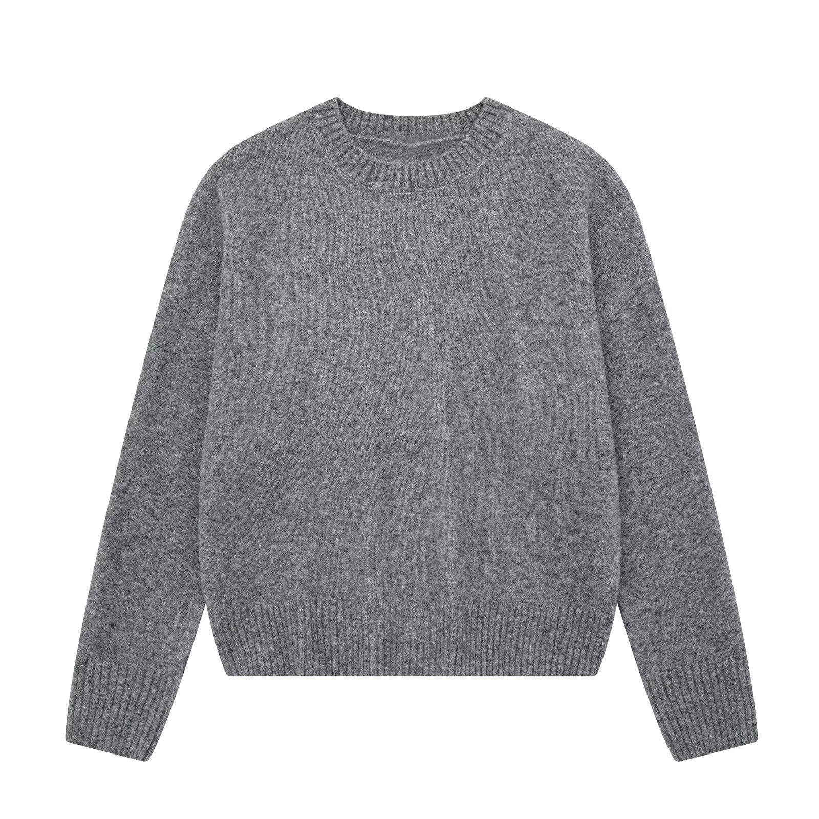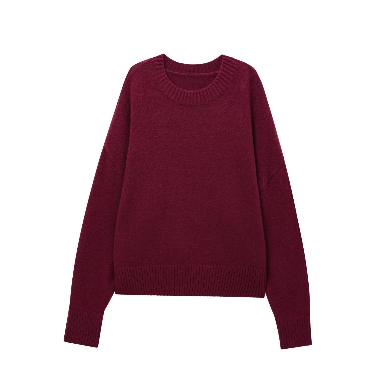 Damen hochwertiger Wollpullover mit klassischem Rundhalsausschnitt Fudus