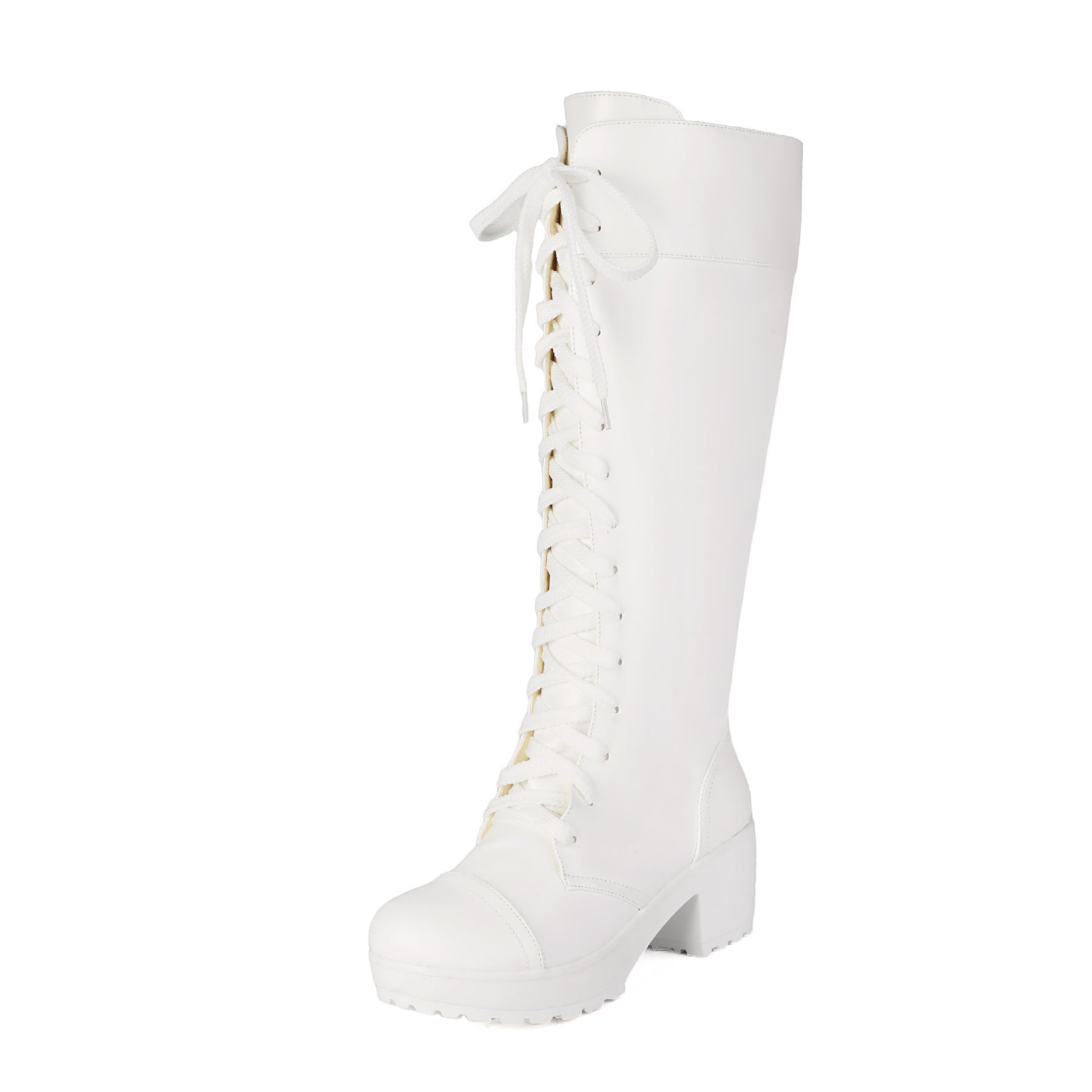 Damen hohe Schnürstiefel mit robustem Blockabsatz Fudus