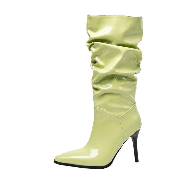 Damen hohe Stiefel mit glänzendem Raffung Design Fudus