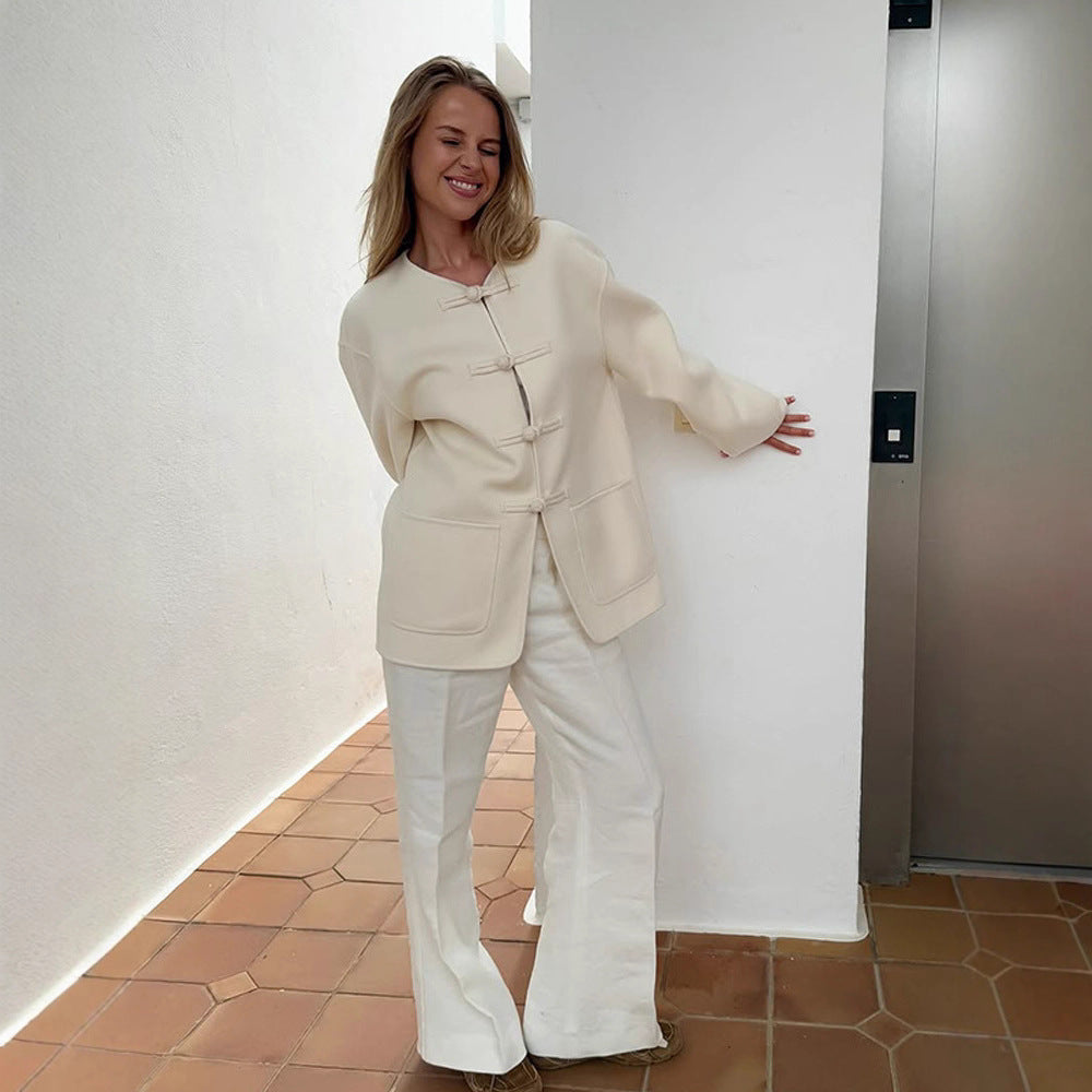 Verleihen Sie Ihrem Outfit einen eleganten Touch mit dieser einzigartigen Wolljacke von Fudus!
