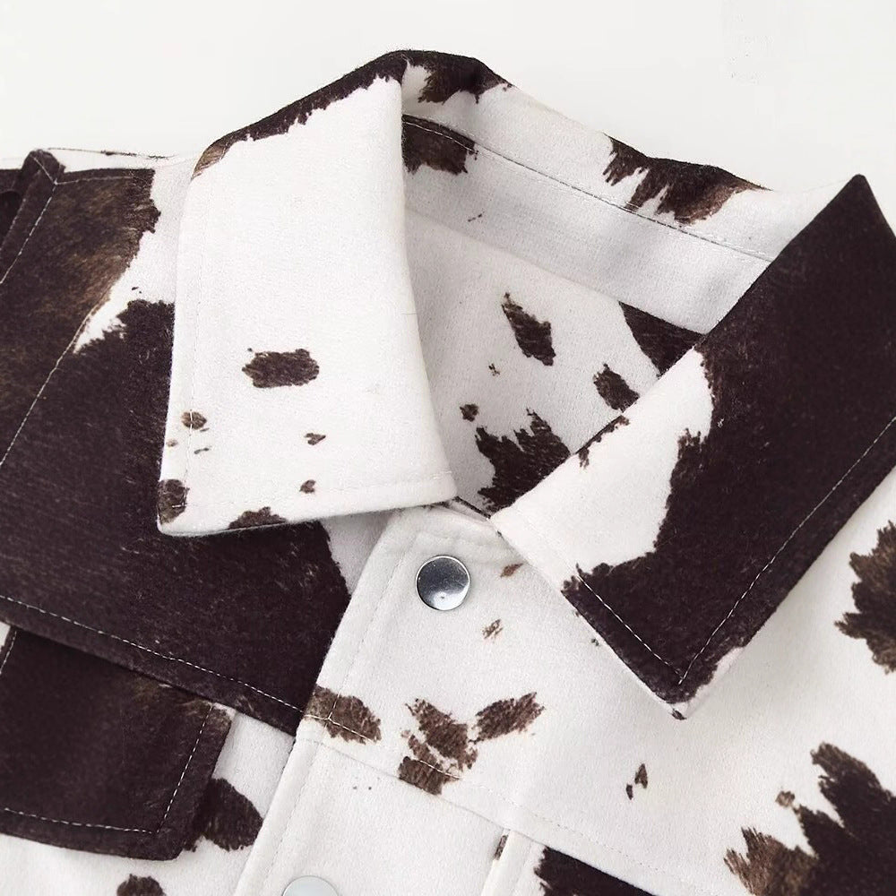 Entdecken Sie die stilvolle Damen Jeansjacke im modernen Kuhfell-Design von Fudus, die mit ihrem einzigartigen Muster sofort ins Auge fällt. Diese modische Jacke vereint Funktionalität und trendigen Style, ideal für jede Gelegenheit.