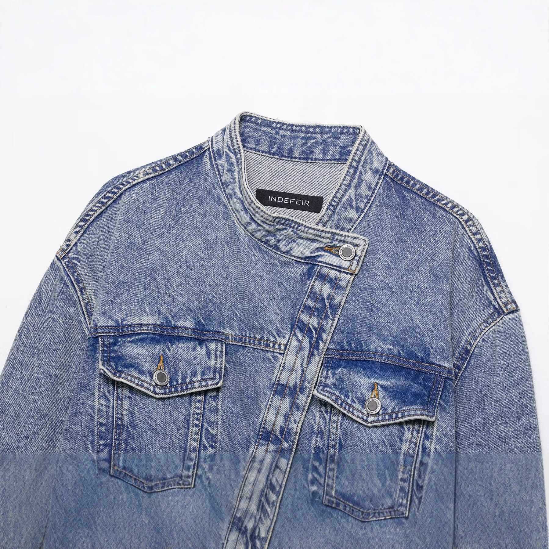 Entdecken Sie die stilvolle Damen Jeansjacke mit asymmetrischem Schnitt von Fudus, die sowohl modisch als auch funktional ist. Diese Jacke kombiniert klassisches Denim mit einem modernen Twist, um Ihnen einen einzigartigen Look zu bieten.