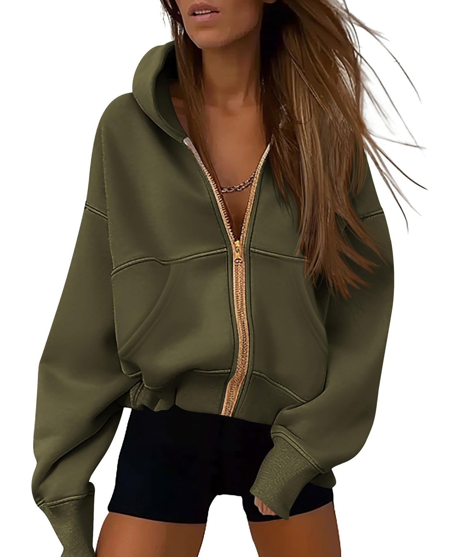 Perfekt für jede Jahreszeit und eine essentielle Ergänzung Ihrer Garderobe. Kombinieren Sie diese Kapuzenjacke mit Leggings oder Jeans für einen entspannten Look.