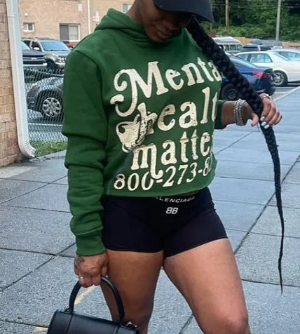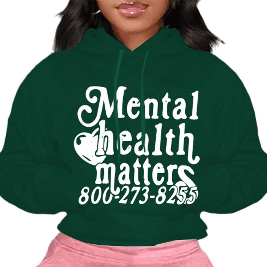 Entdecken Sie unseren bequemen Damen Kapuzenpullover, der nicht nur stylisch, sondern auch bedeutungsvoll ist. Mit dem inspirierenden Aufdruck "Mental health matters" setzen Sie ein wichtiges Statement für mentale Gesundheit.