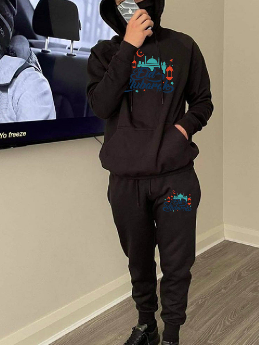 Das Damen Kapuzenpullover und Jogginghose Set mit festlichem Muster Fudus ist die perfekte Wahl für Feierlichkeiten und entspannte Tage. Mit seiner besonderen „Eid Mubarak“-Grafik bringt dieses Set einen Hauch von Festlichkeit in Ihren Alltag.