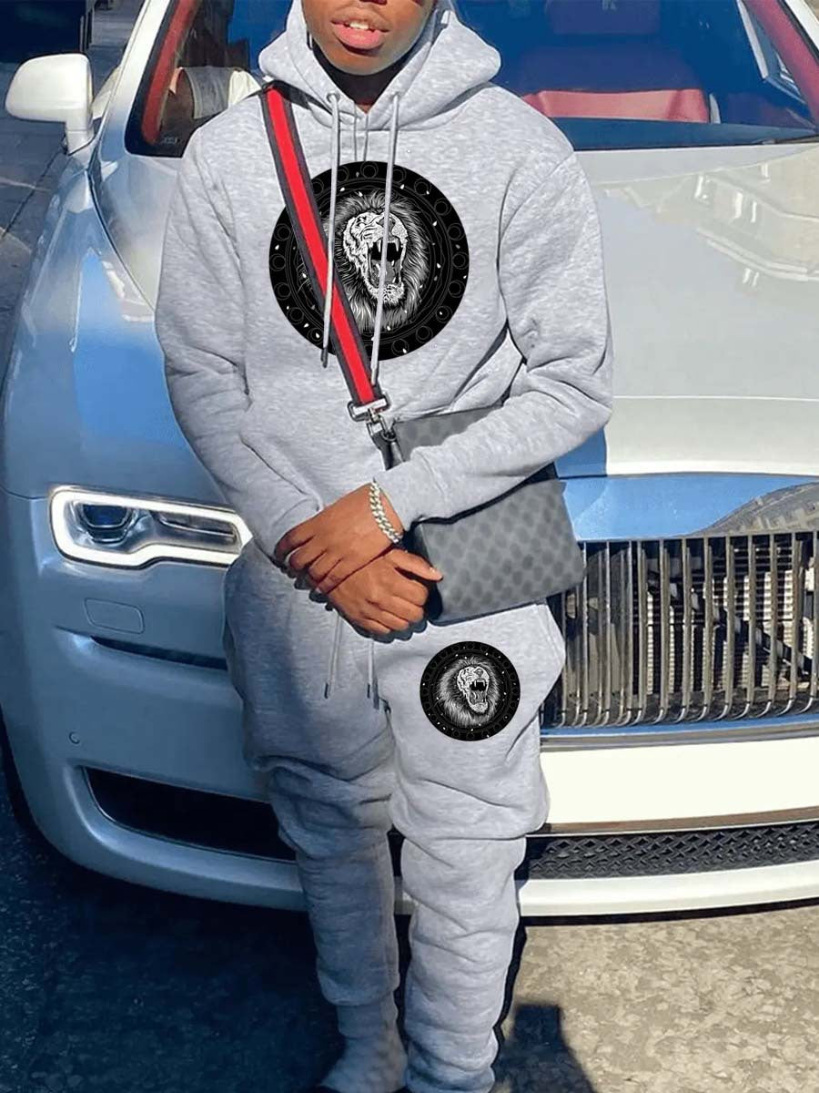 Dieses stilvolle Damen Kapuzenpullover und Jogginghose Set von Fudus kombiniert Komfort und modisches Design. Der Kapuzenpullover präsentiert ein beeindruckendes Löwenmotiv, das für ein kraftvolles und selbstbewusstes Statement sorgt. Hergestellt aus hochwertigem, weichem Material, bietet es optimale Bewegungsfreiheit und ein angenehmes Tragegefühl.