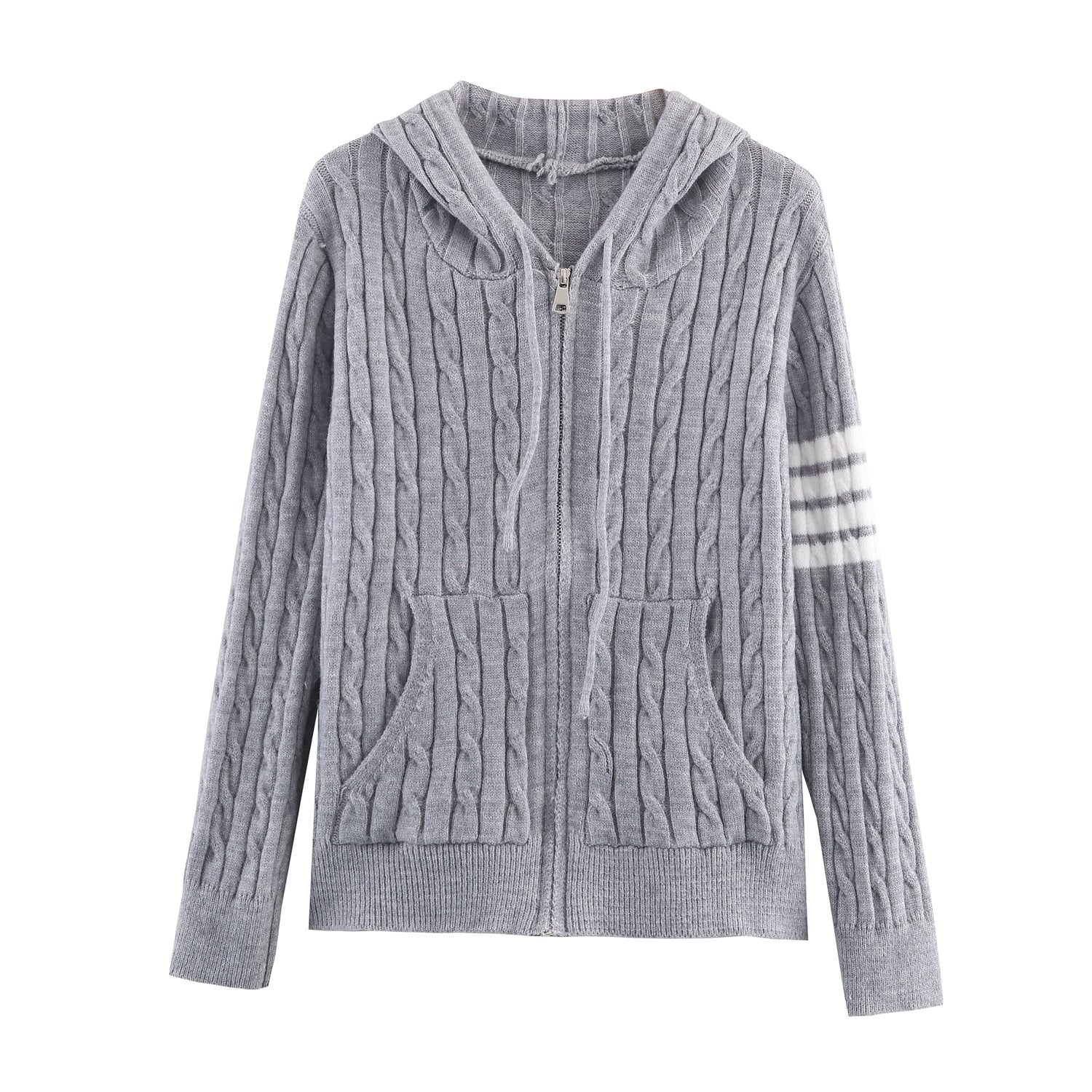 Damen Kapuzenstrickjacke mit Kabelmuster und großen Taschen Fudus