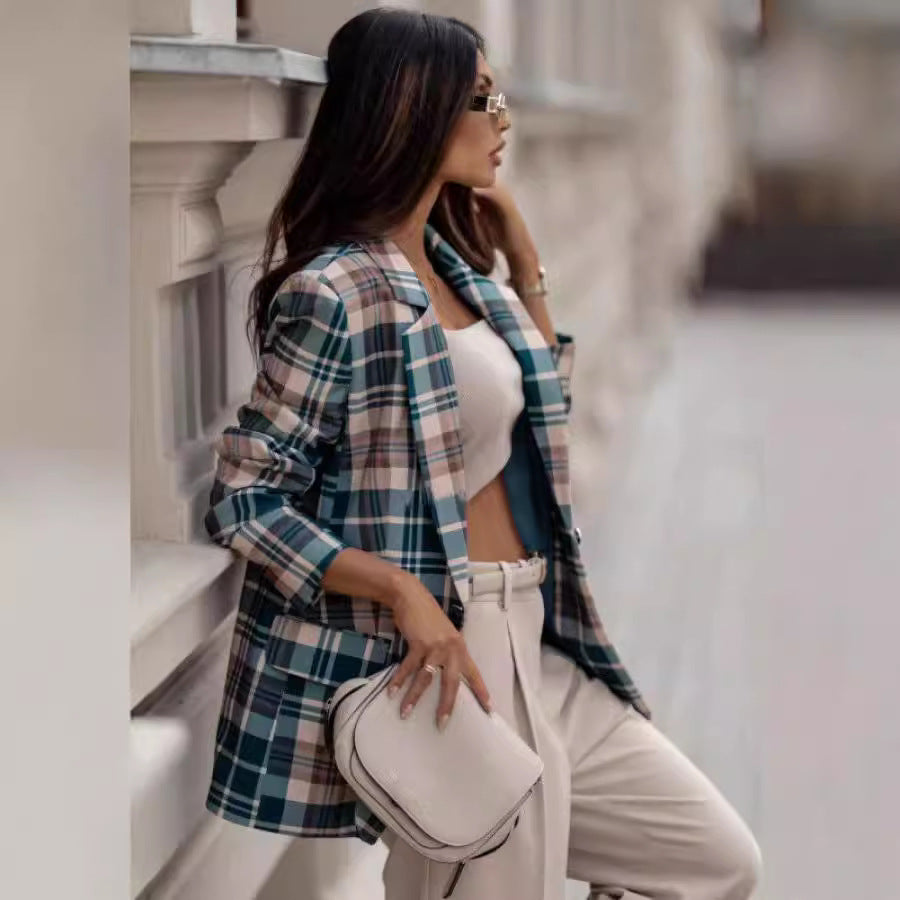 Damen Karierte Blazerjacke mit elegantem Schnitt Fudus